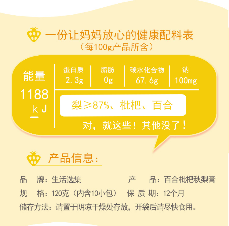 【儿康堂专属】百合枇杷秋梨膏(12克*10支*2盒 /4盒)