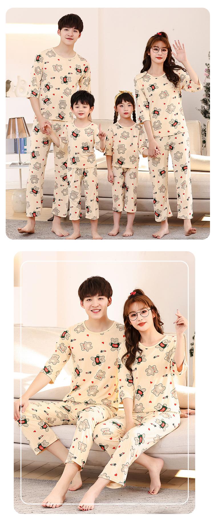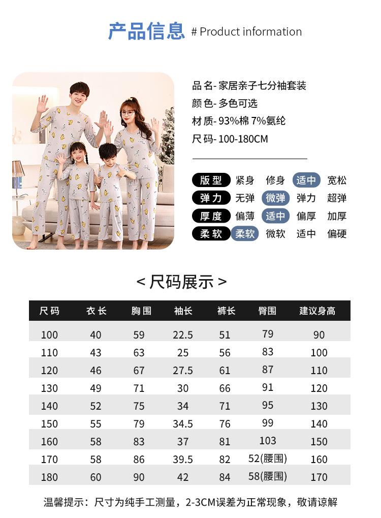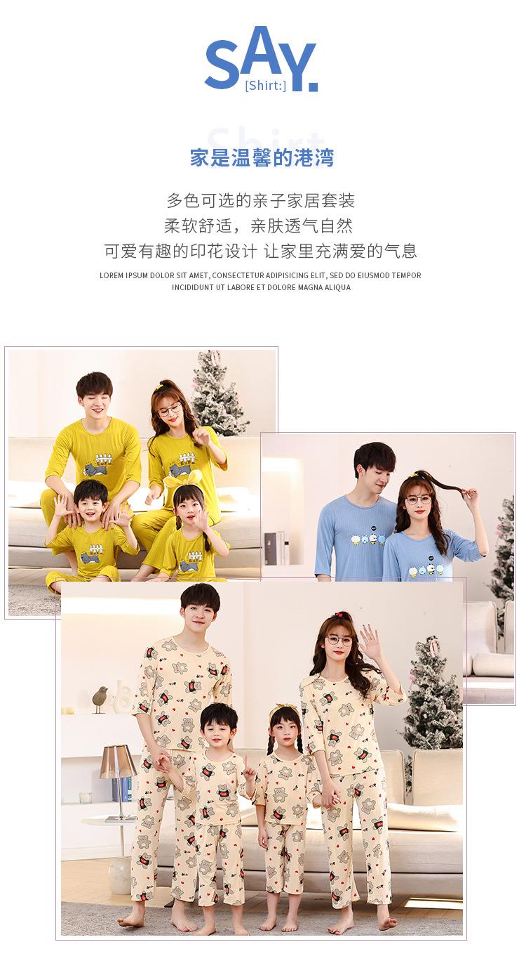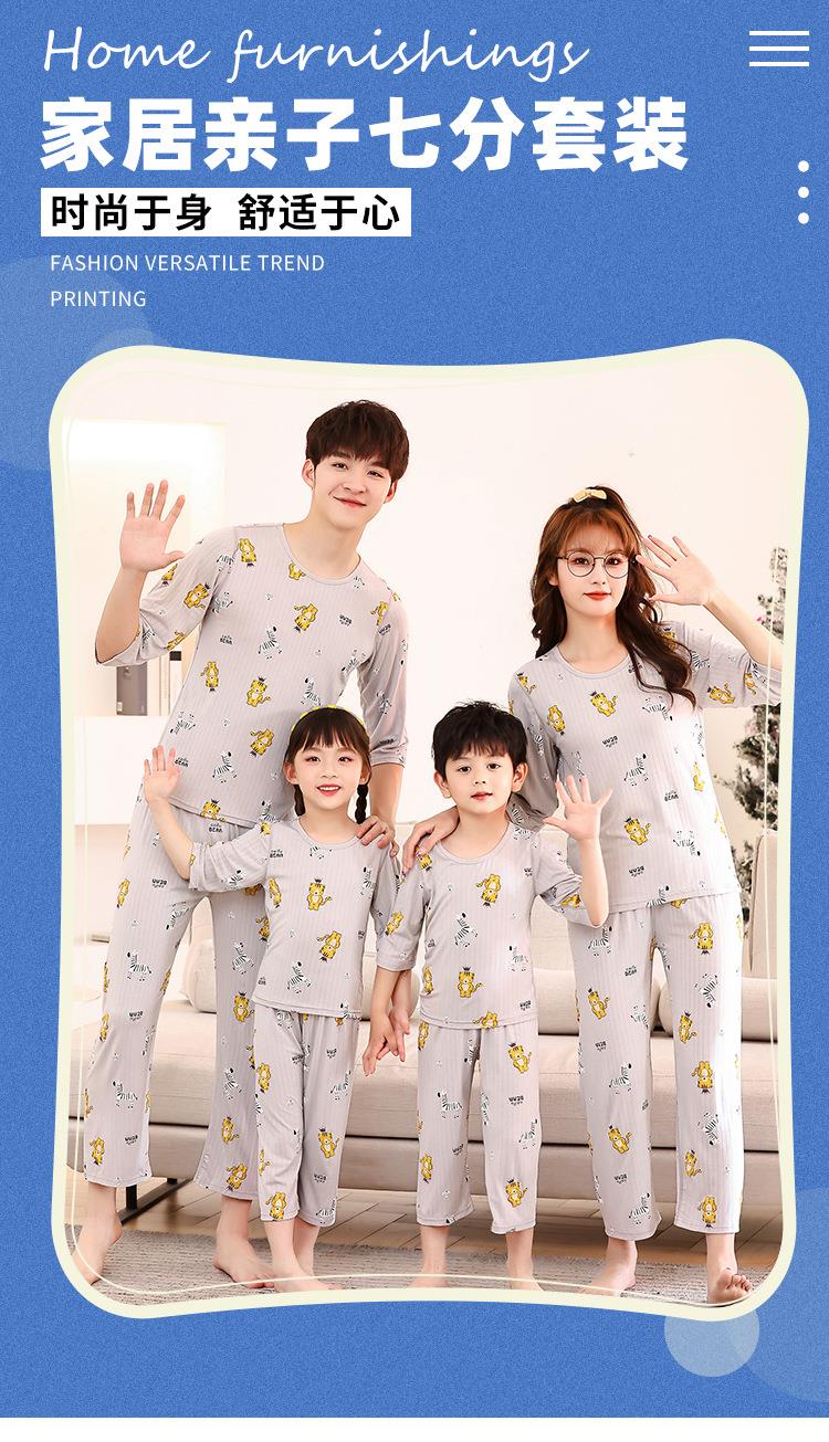 亲子装夏一家三口四口母子装儿家庭装七分袖套装夏季新款一件代发
