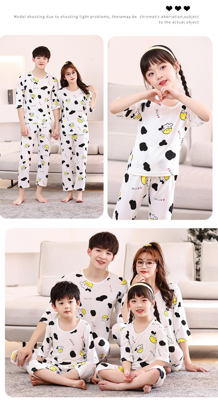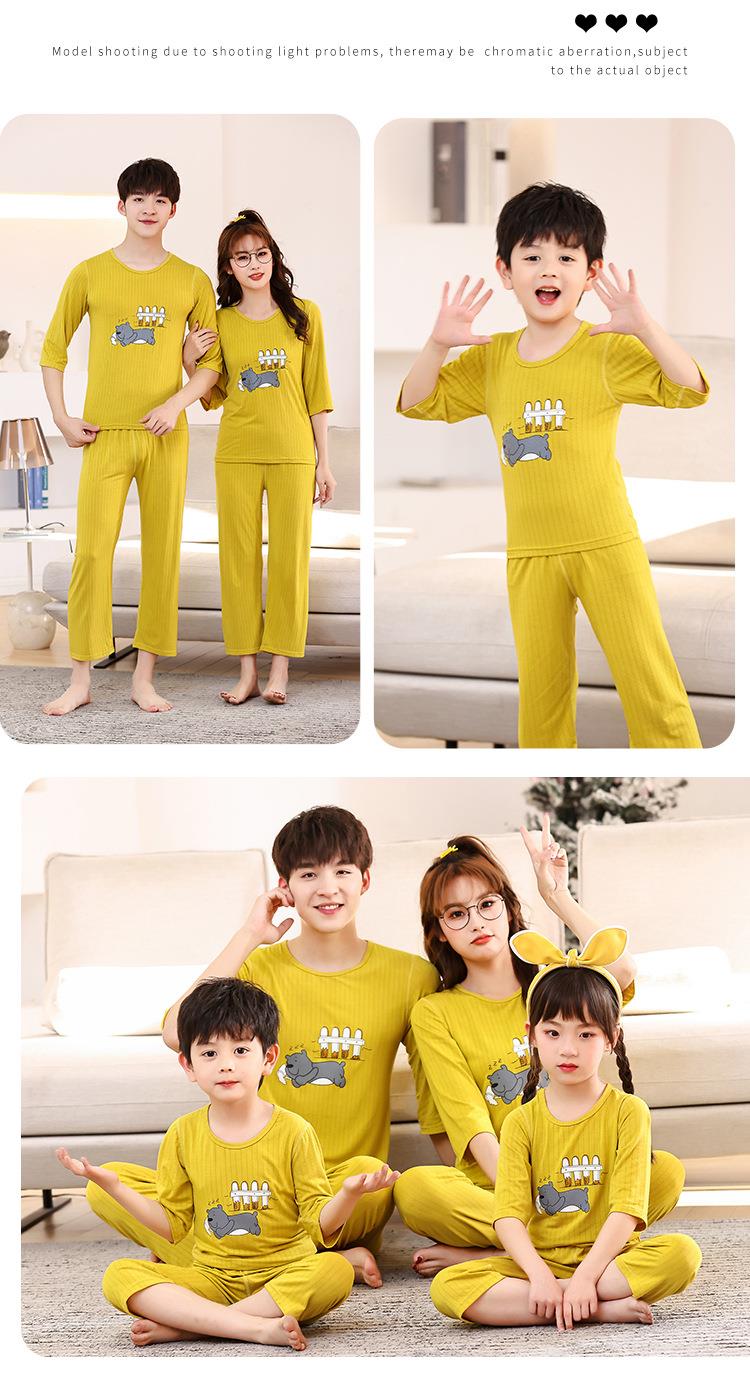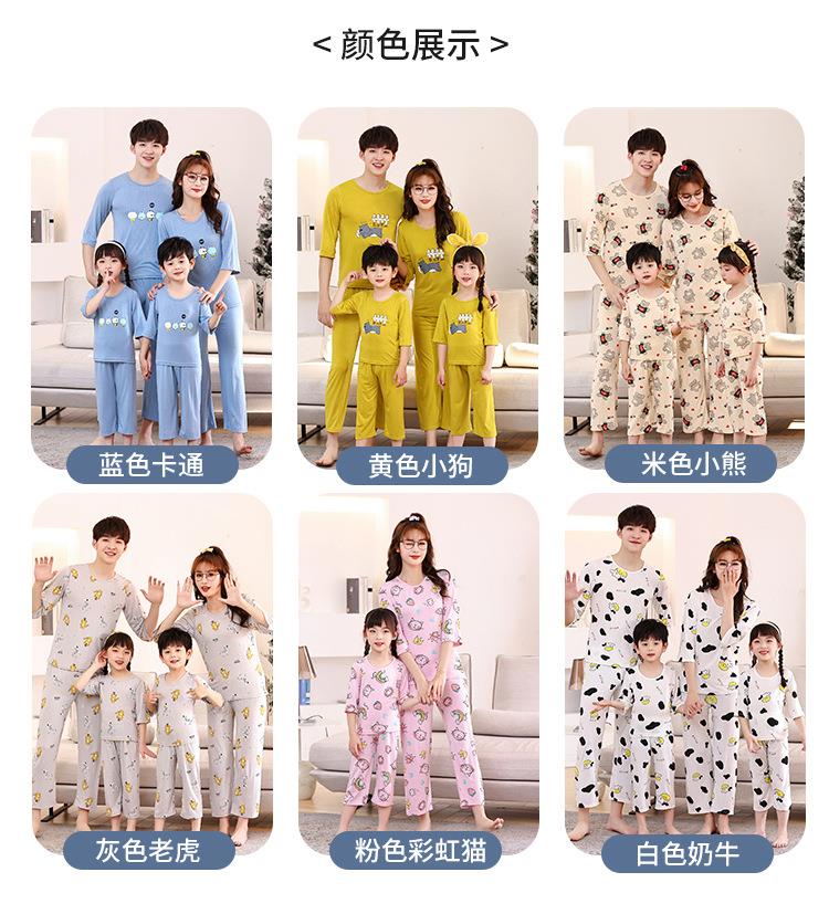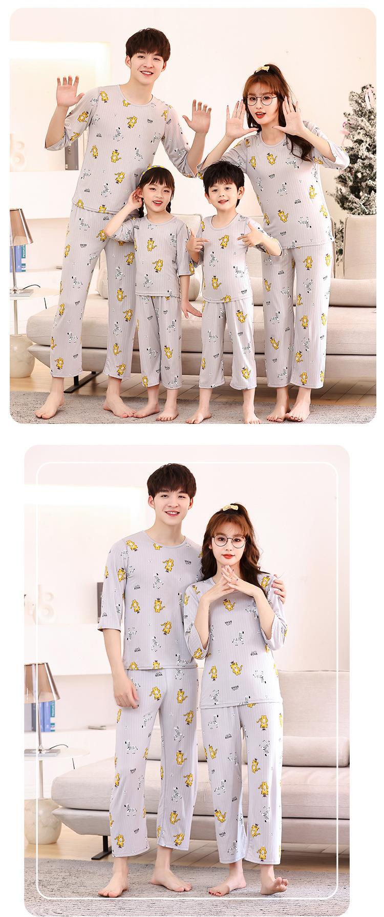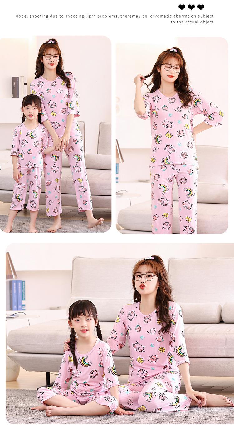 亲子装夏一家三口四口母子装儿家庭装七分袖套装夏季新款一件代发
