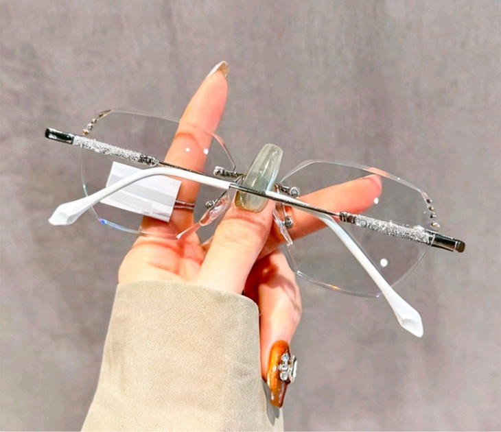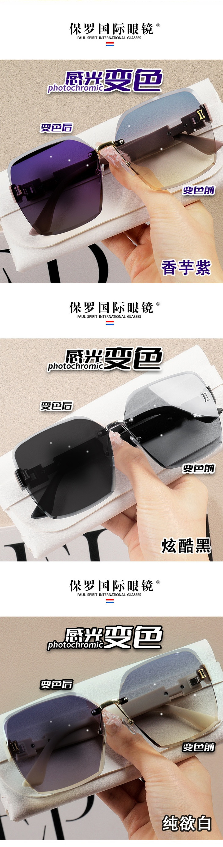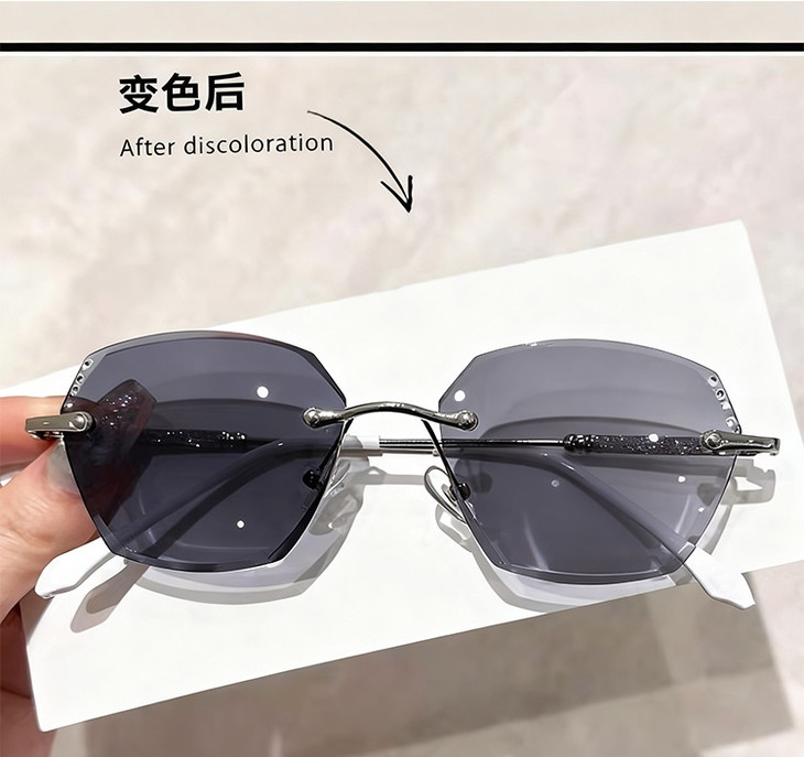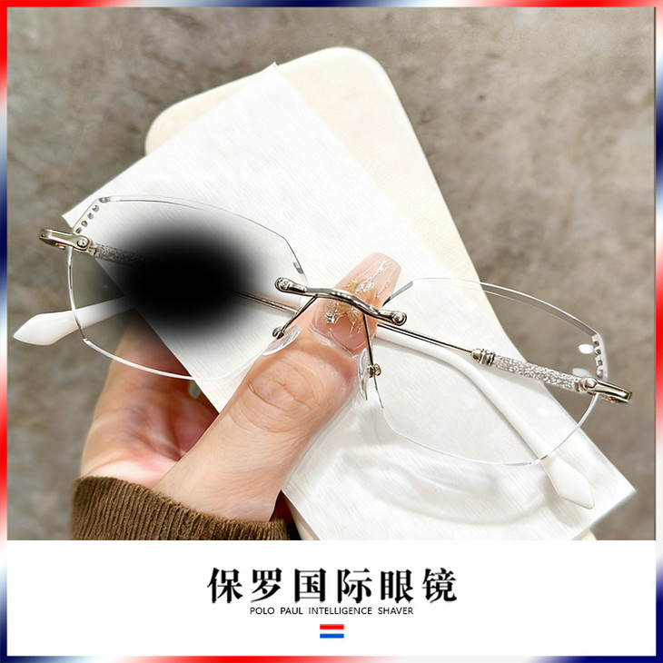 第二款【保罗闪银变色眼镜】 👉🏻礼盒内含:紫色、银色两个颜色 日常戴不突兀,出街秒变时髦精 一副搞定室内外全场景! ✅采用无框切边工艺 利落的多边形线条勾勒出精致轮廓,通透感拉满 上脸瞬间弱化面部棱角 显脸小不挑人,温柔又大气 ✅镜腿处的闪钻纹理设计 在光线下自带细闪,低调中透着精致感 细节控狂喜!