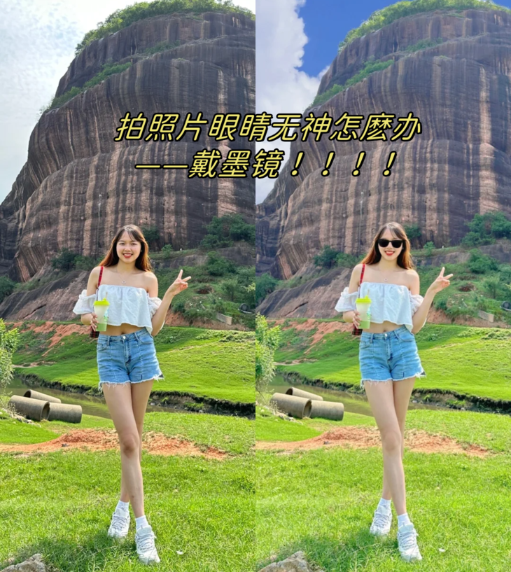 我真的建议大家“囤”墨镜😎 很多话时候大家拍照的时候 99%不出片的原因不是姿势😌 而是眼神不到位,就显得照片无神状态不对 有了墨镜,即便走神, 也能拍出很飒的大片~😏