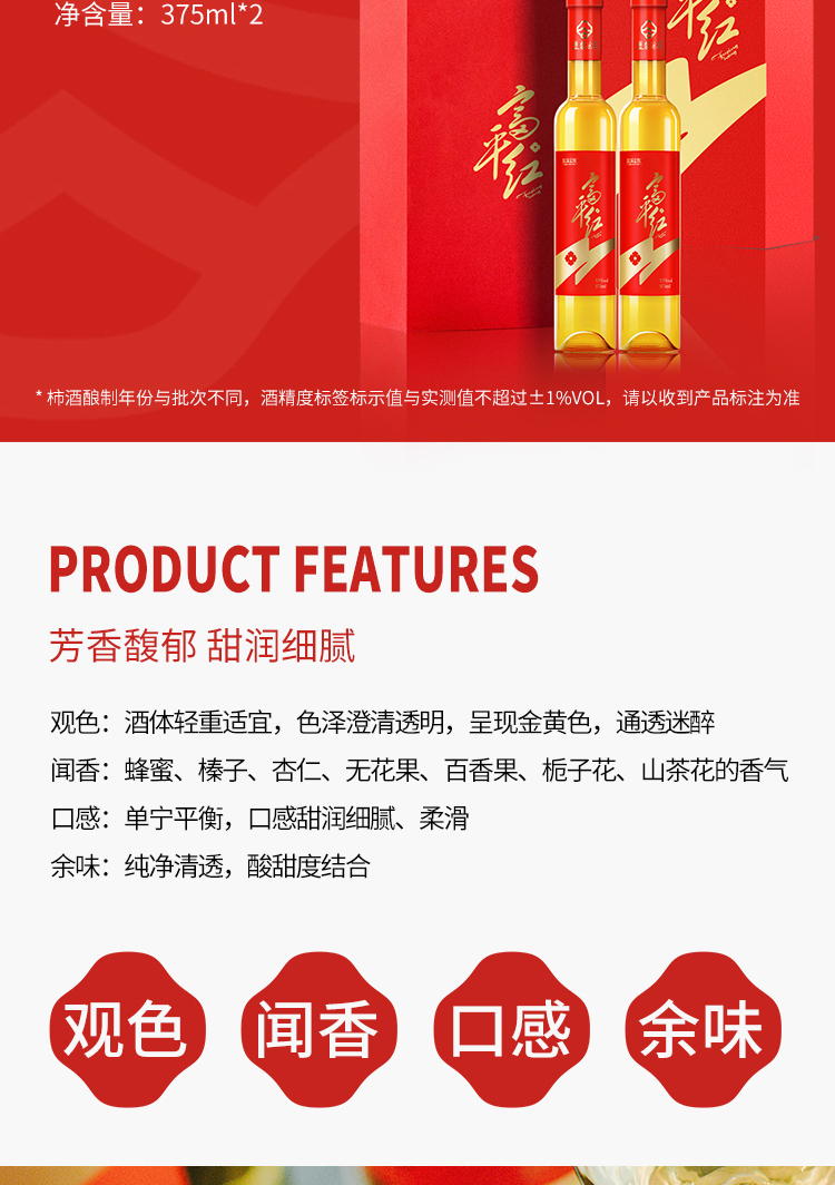 【蓝溪金炫柿子酒】蓝溪金炫 富平红礼盒 13.9%vol 原酿柿酒 富平红375ml双支礼盒