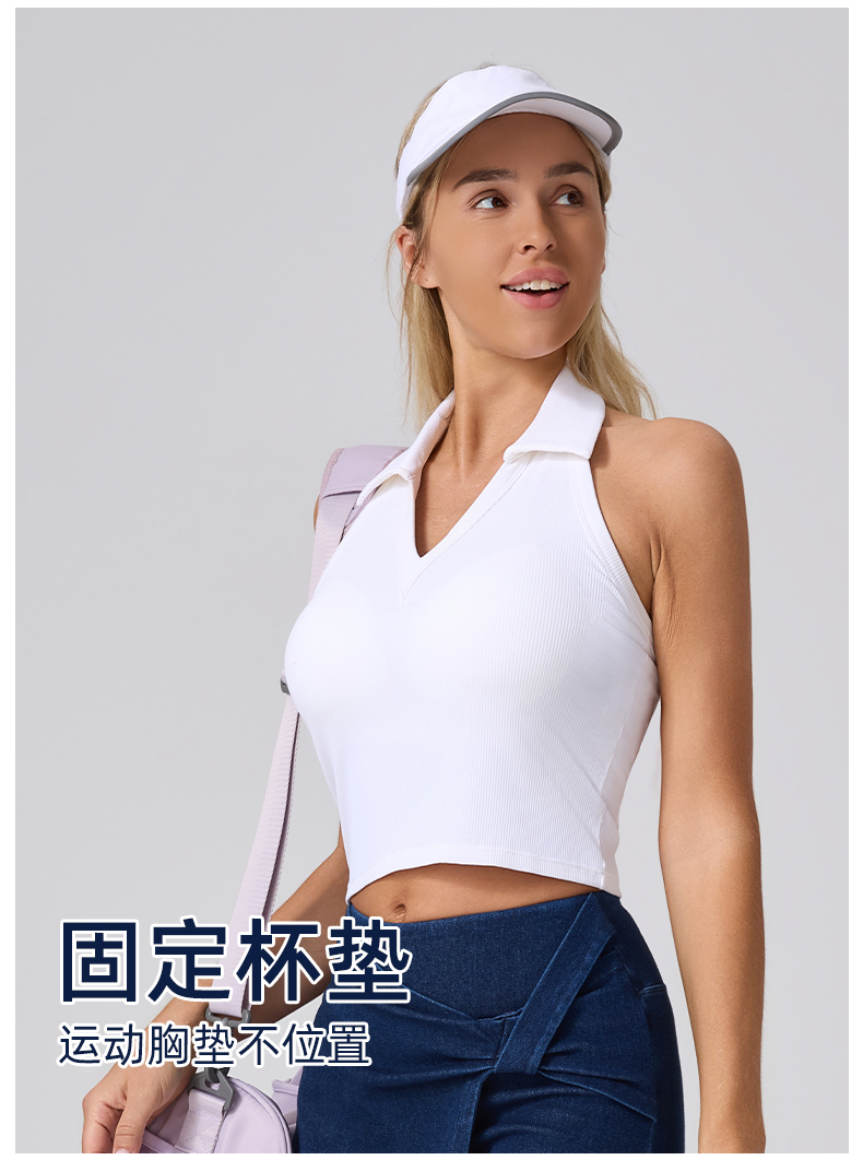 IYOGA 瑜伽服女挂脖翻领款 大漏背设计 固定杯免穿内衣 运动背心 B065