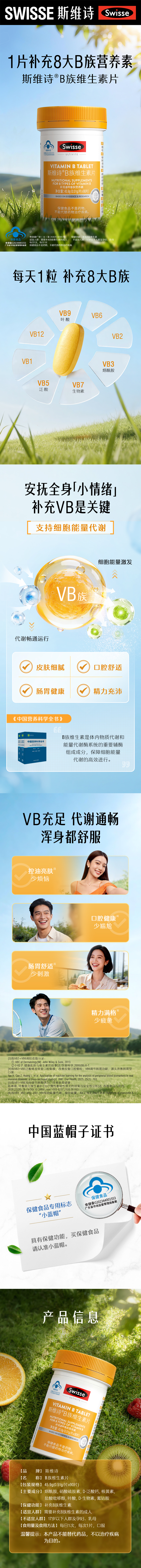 斯维诗B族维生素片 90片装