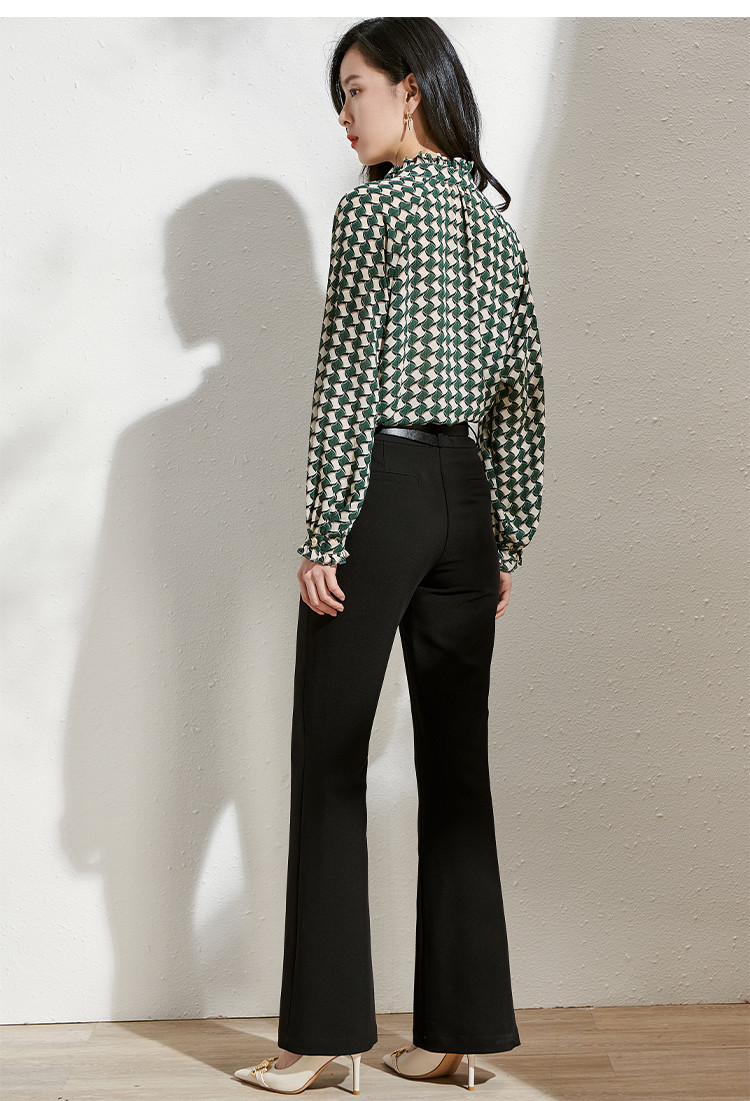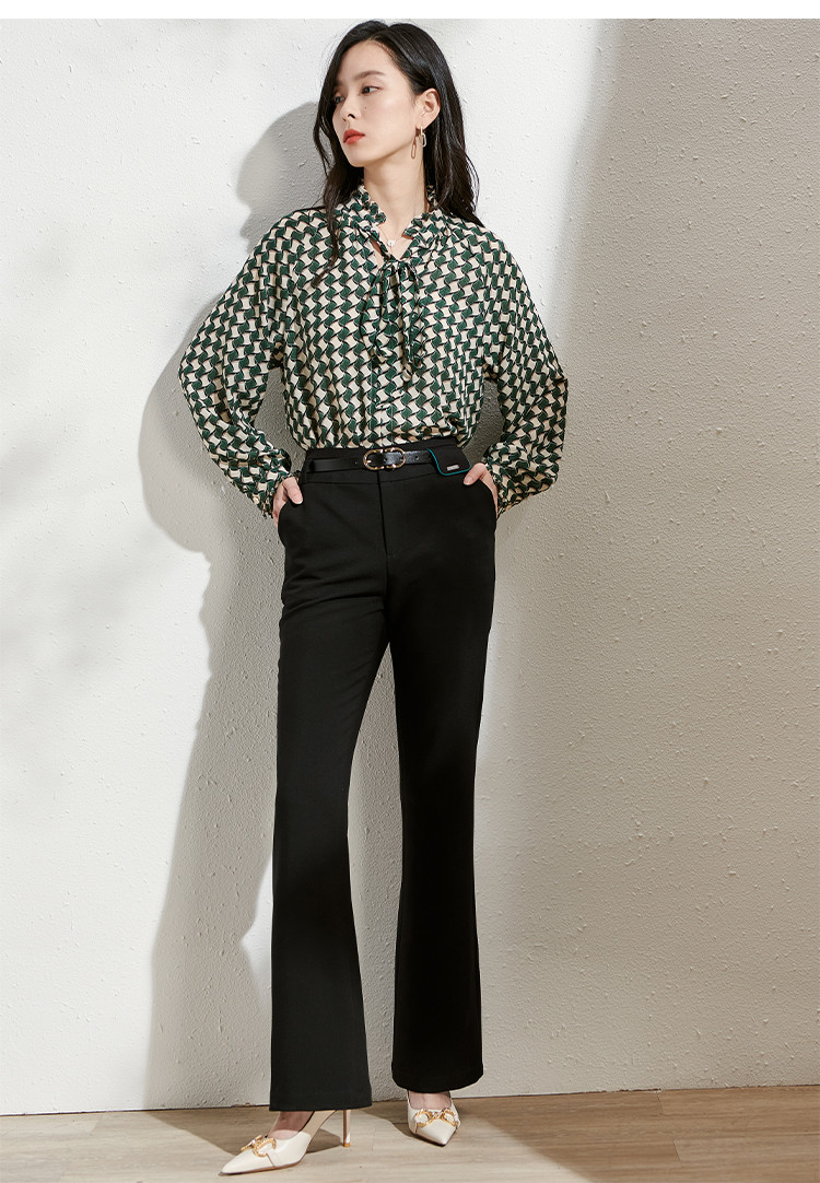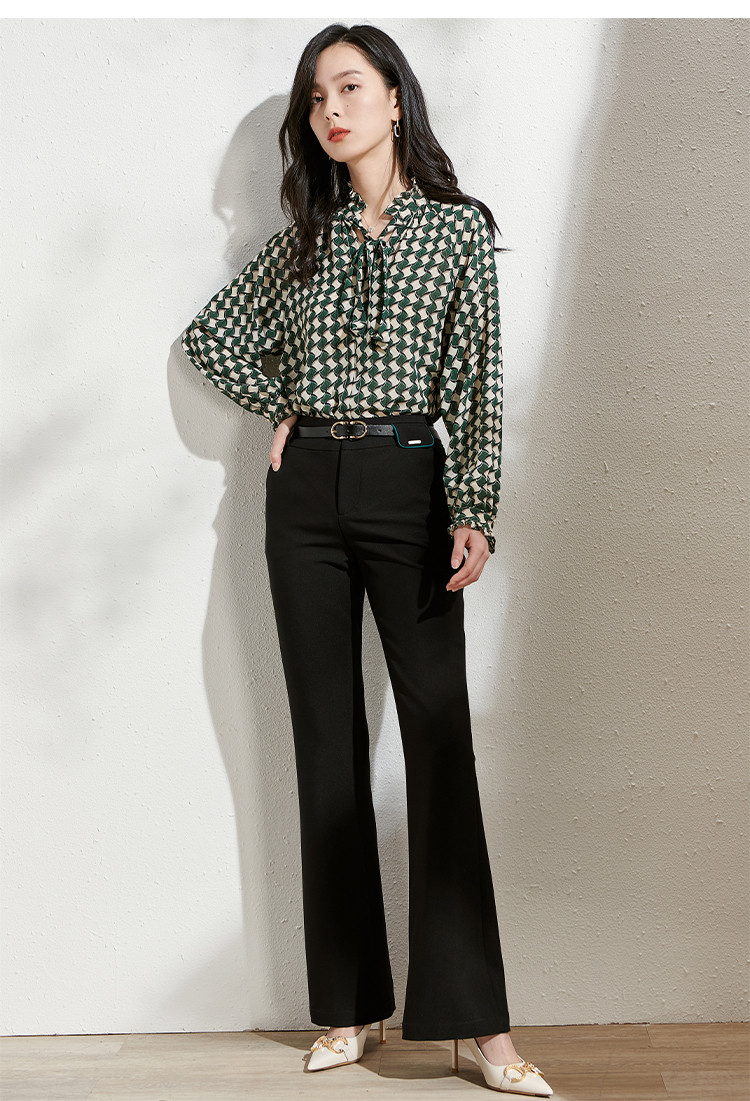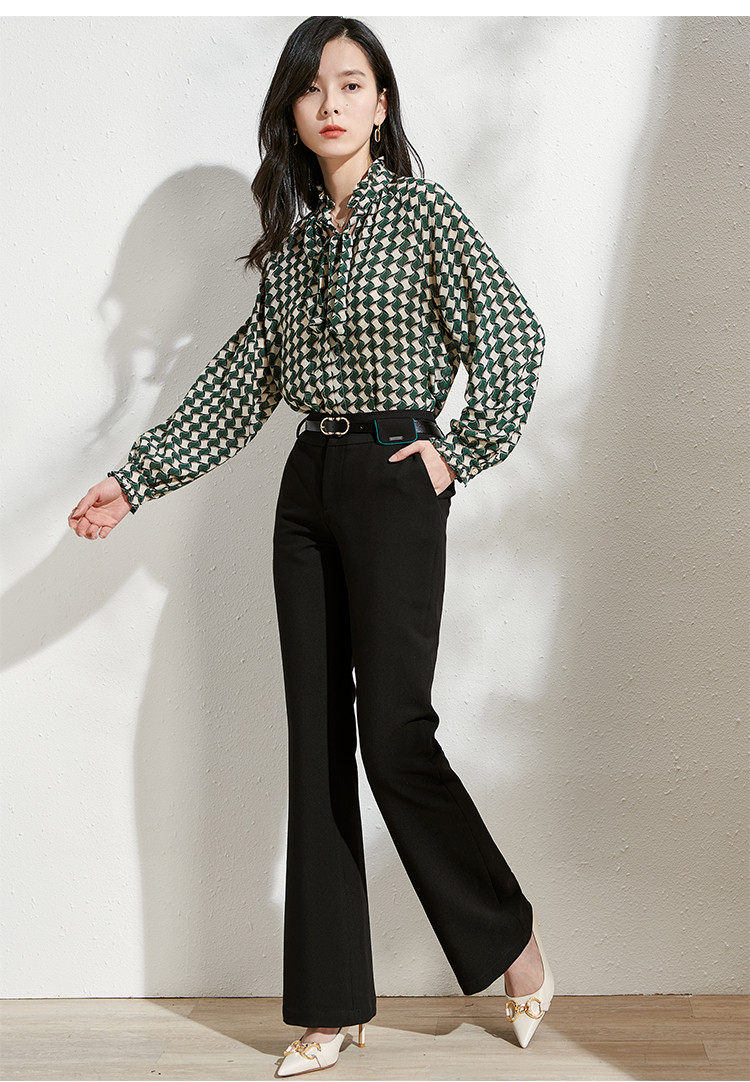 剩M 芳外拼色荷叶袖绑带领2025春季新款长袖知性女式衬衫