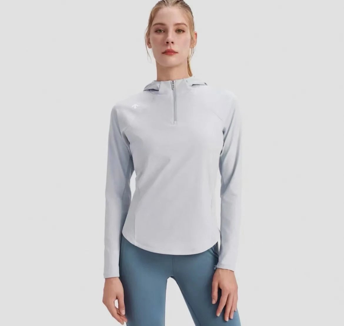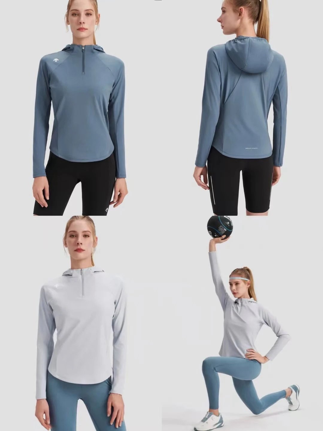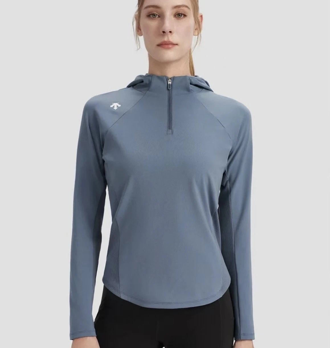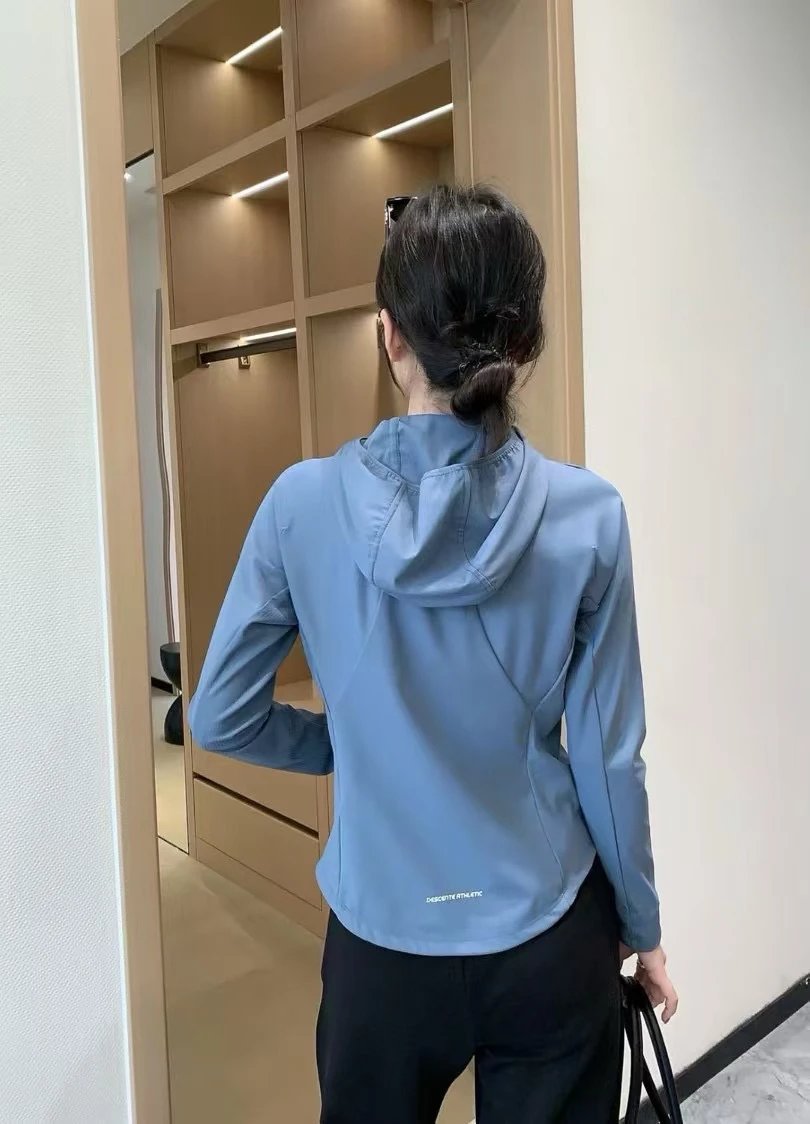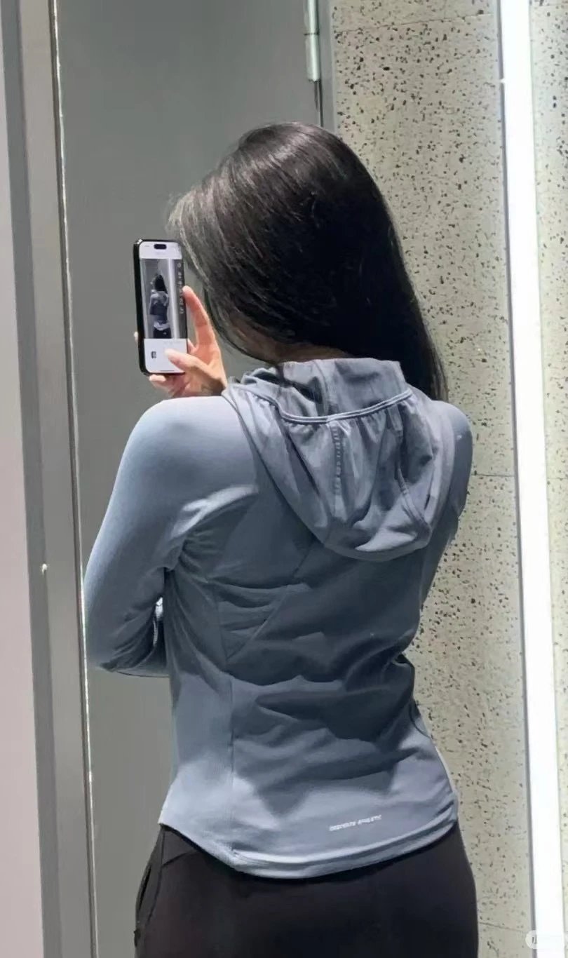 重磅渠道 迪连帽长袖 纯元ds女士连帽版拉链针织外套 四面弹力训练外套