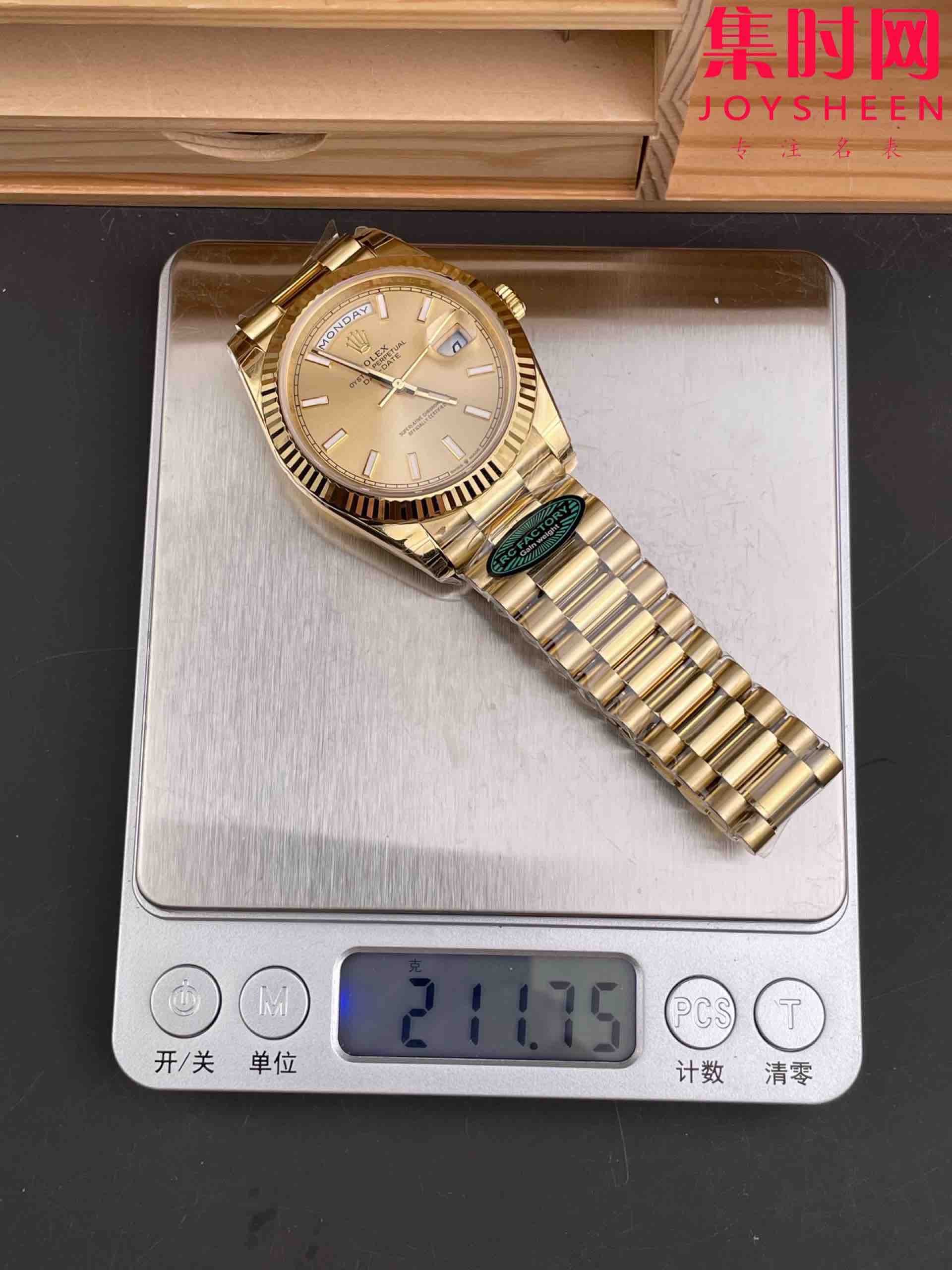 RC配重版 重量200克+ 全金香槟金DD 劳力士星期日历型系列 日志40mm