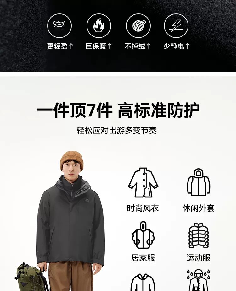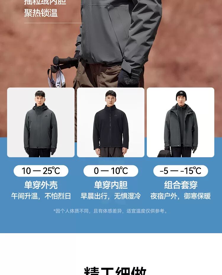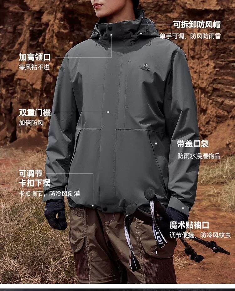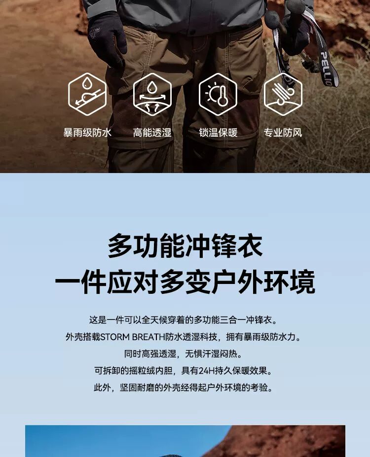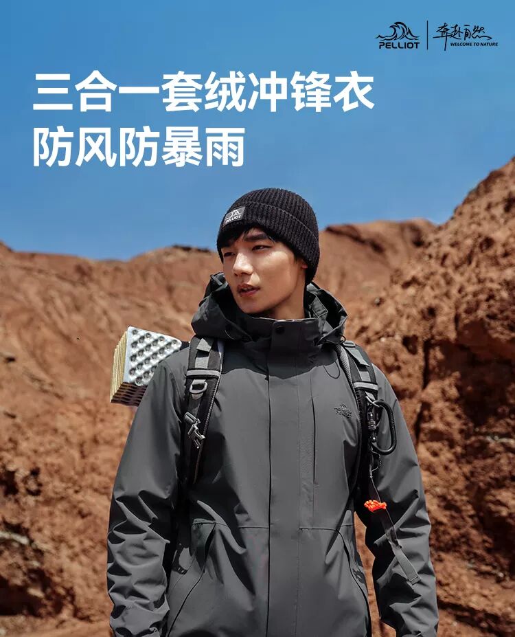 伯希和户外冲锋衣男新款三合一可拆卸摇粒绒内胆防风徒步外套女