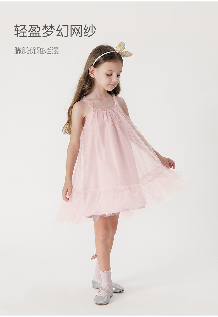 【马克珍妮 芦芙】女童梦幻花边网纱连衣裙吊带裙夏装新款240562