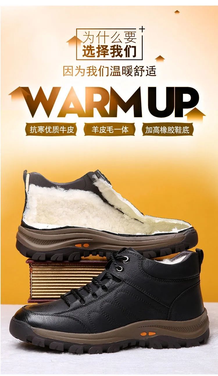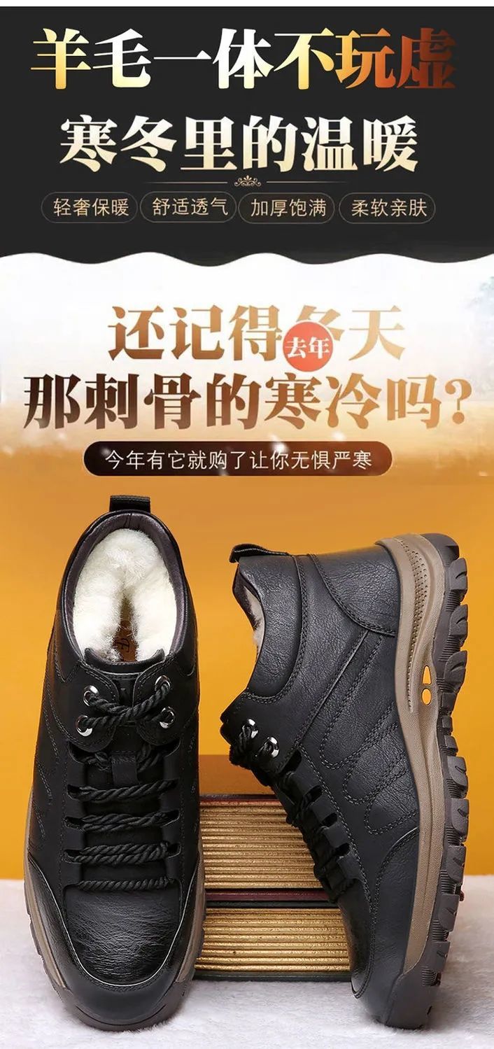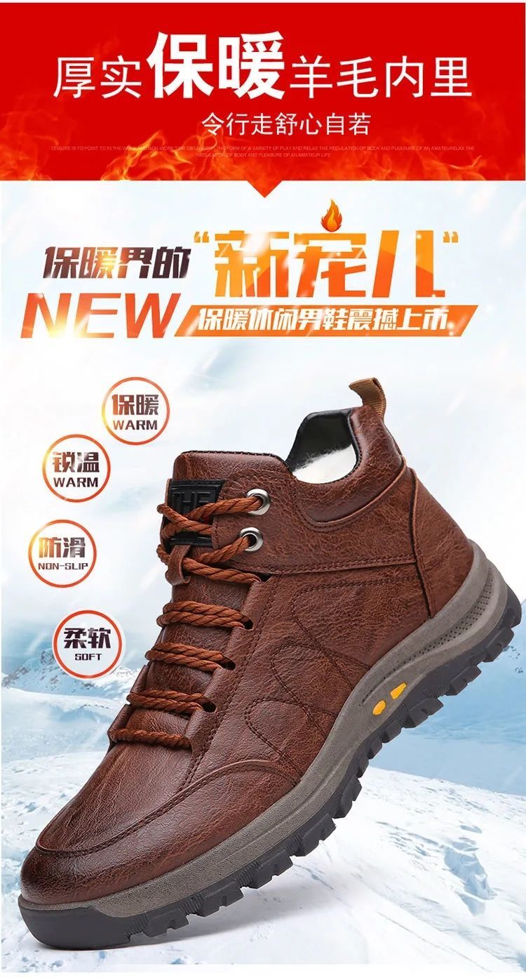 高品质棉鞋秋冬必备!【保暖羊毛休闲鞋】新款男鞋秋冬休闲皮鞋男户外运动防滑登山鞋子男