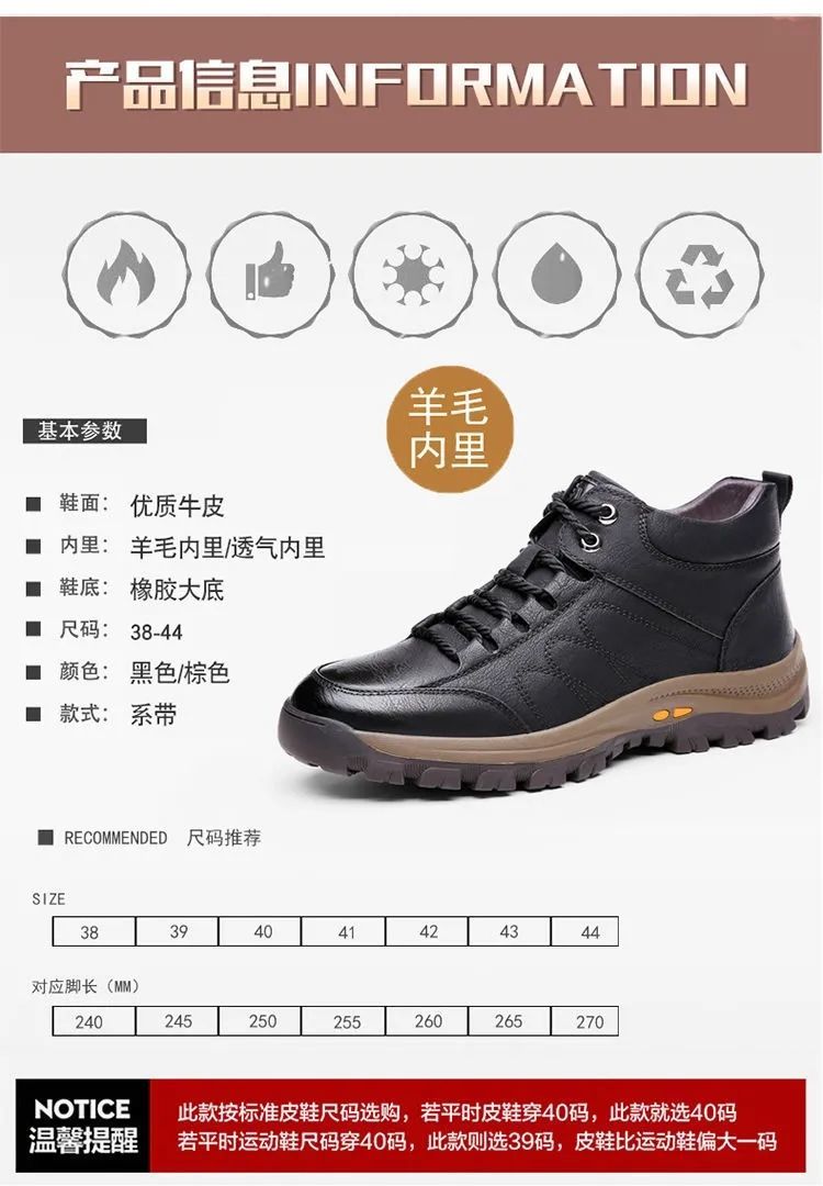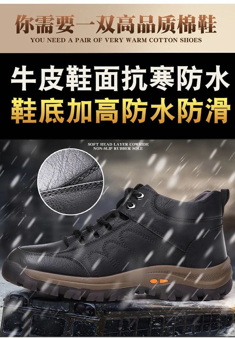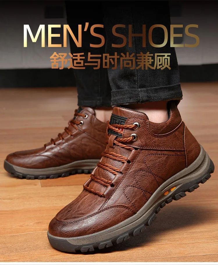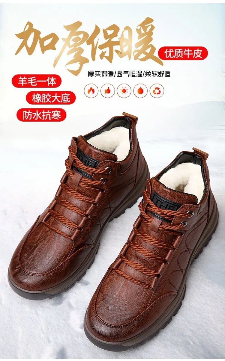 高品质棉鞋秋冬必备!【保暖羊毛休闲鞋】新款男鞋秋冬休闲皮鞋男户外运动防滑登山鞋子男