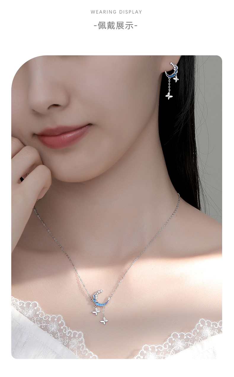 卡蒂罗/KADER 蝶舞环月耳环 梦幻克莱因蓝闪闪蝶舞仙气流苏耳钉 灵动轻盈璀璨闪耀配饰甜蜜饰爱 925银
