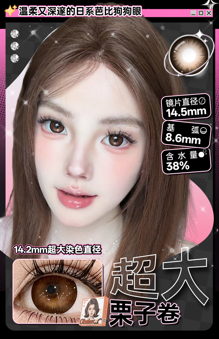 新品【超大地雷方盒系列】超大栗子卷14.5【买即送护理液】Obalen欧巴兰无感扩瞳漫画大眼半年抛2片装