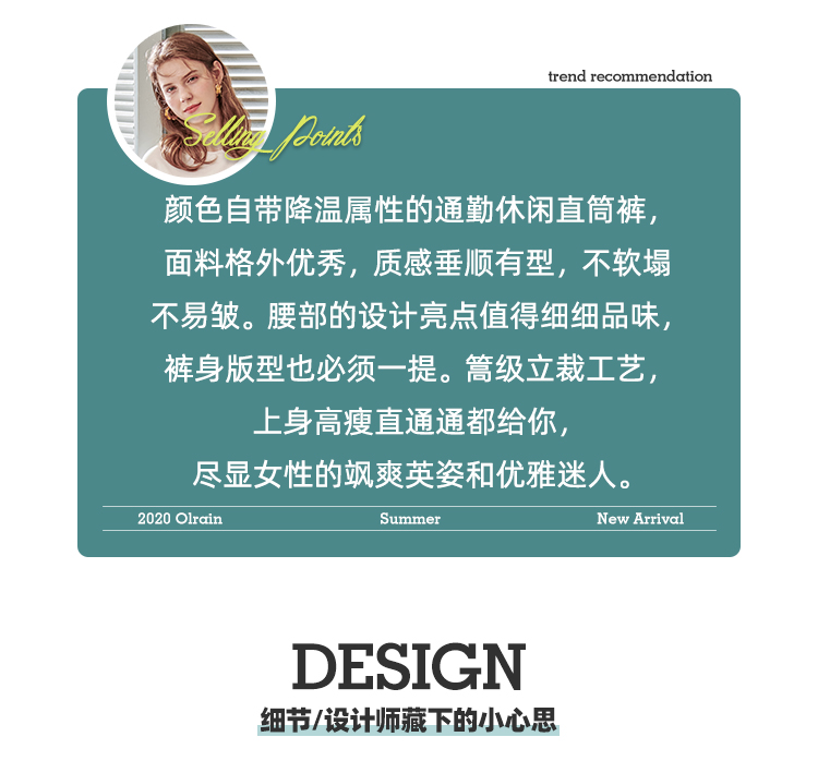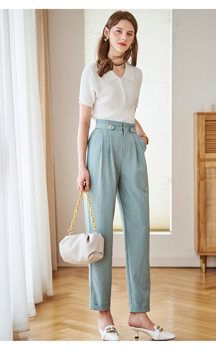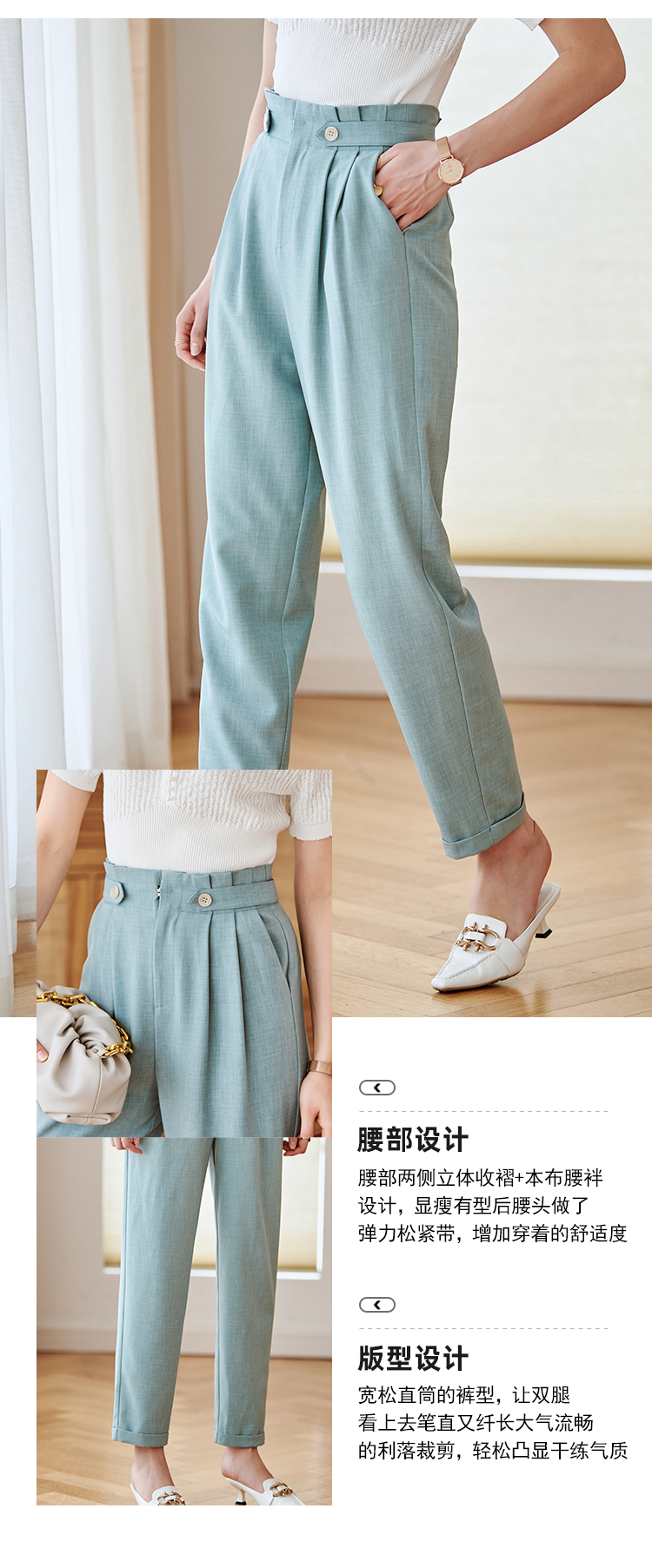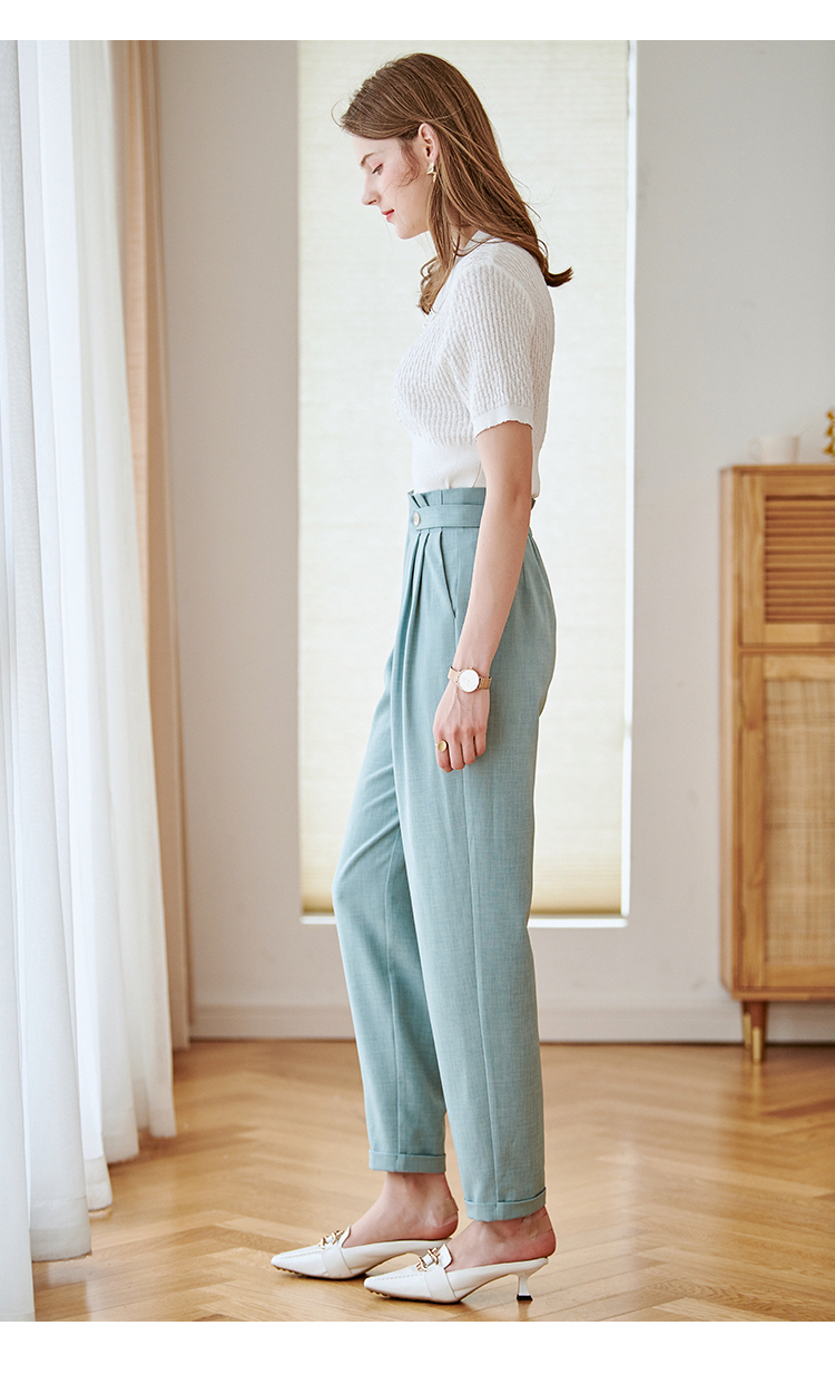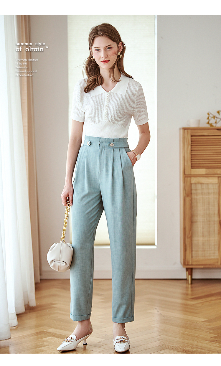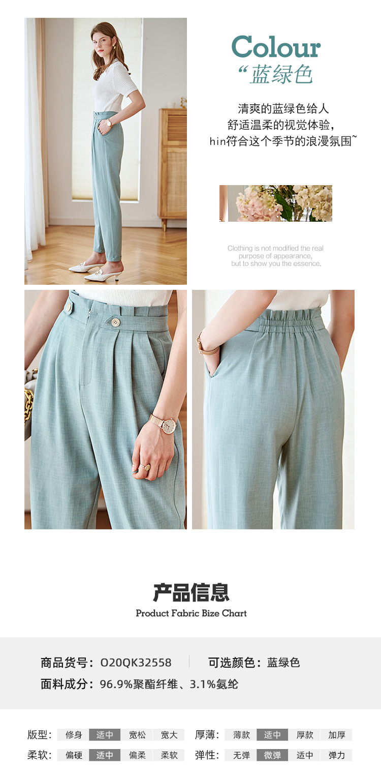 欧芮儿九分休闲裤子女薄款新款高腰显瘦直筒修身收腰通勤