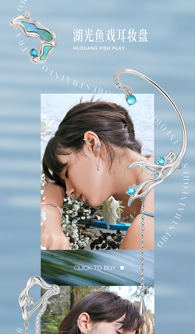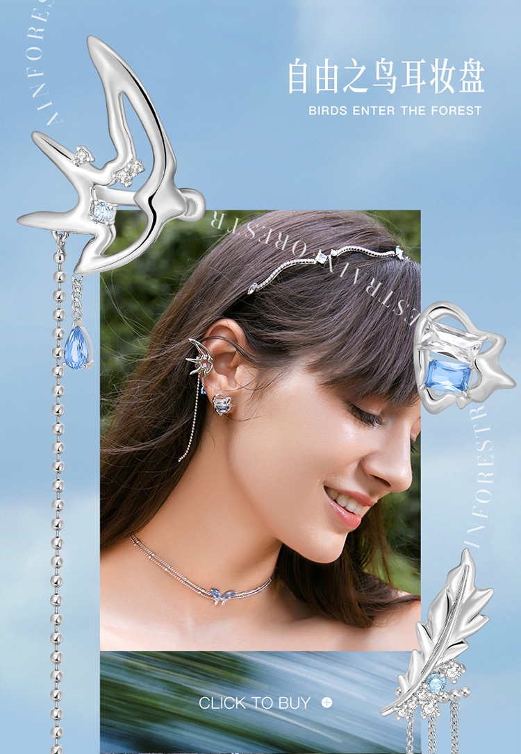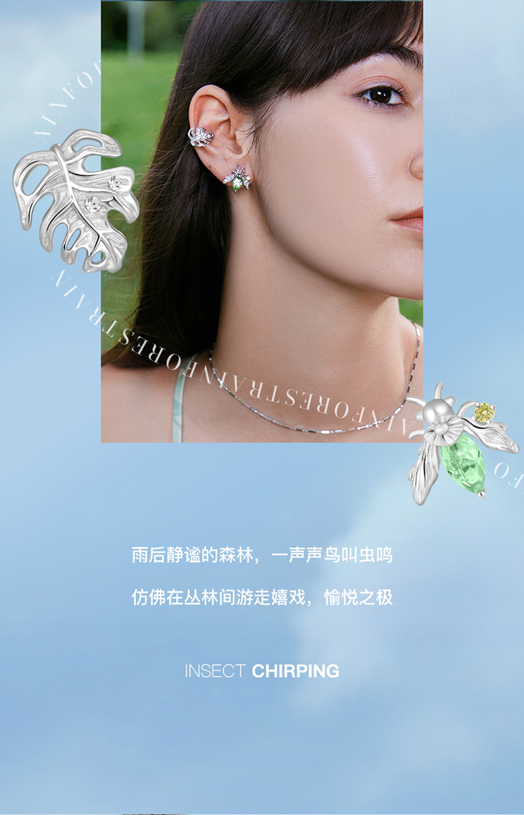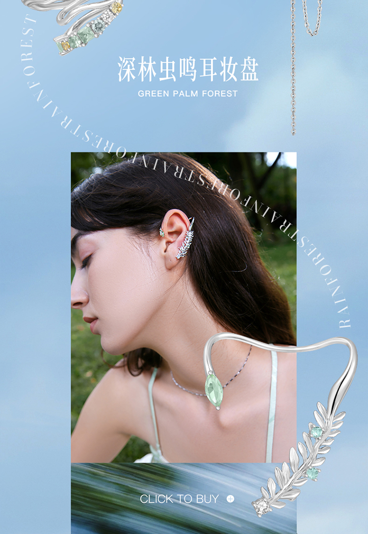 ZEGL设计师雨林系列耳妆盘耳夹女夏无耳洞耳骨夹银针耳钉耳环耳饰