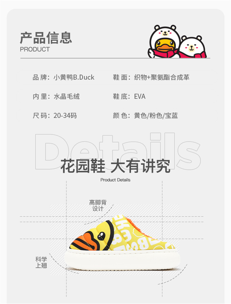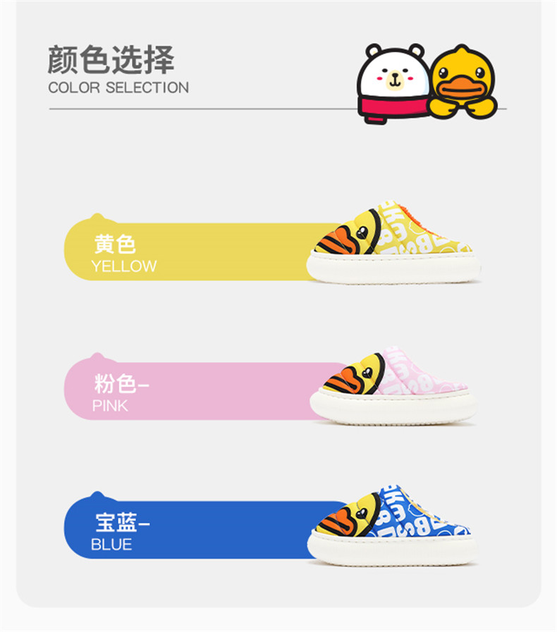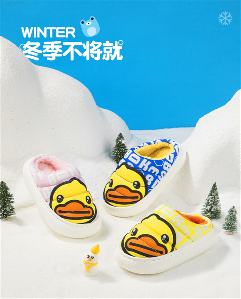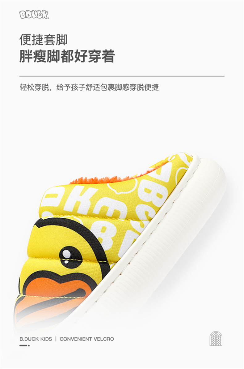 B.Duck小黄鸭儿童童鞋冬季休闲加绒保暖棉拖20-34 B4210940