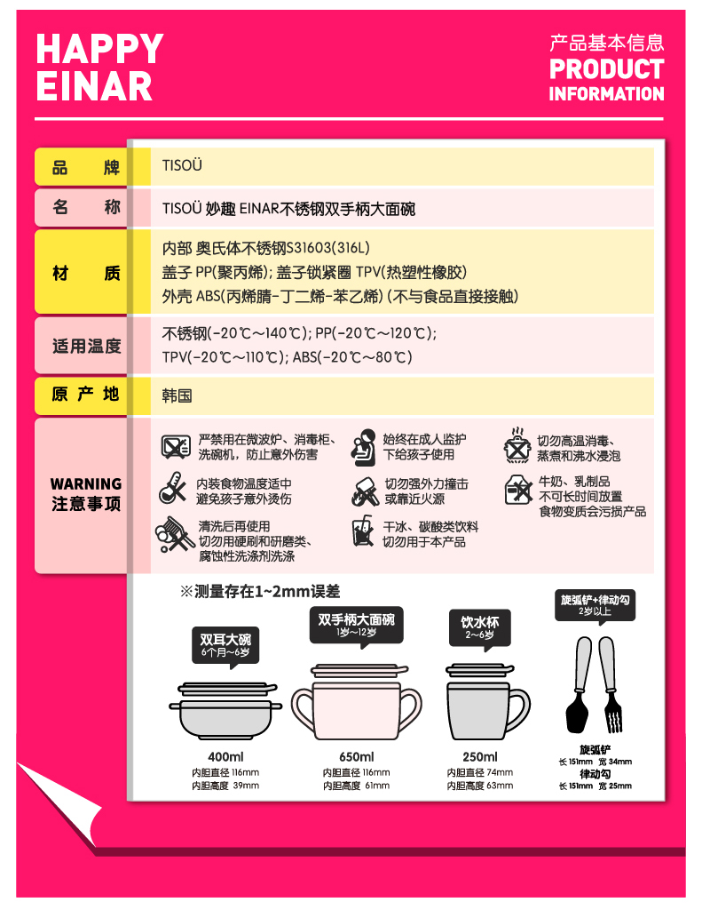 TISO?? 妙趣einar不锈钢双手柄大面碗650ml