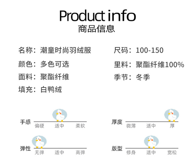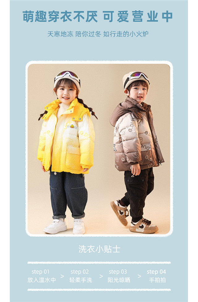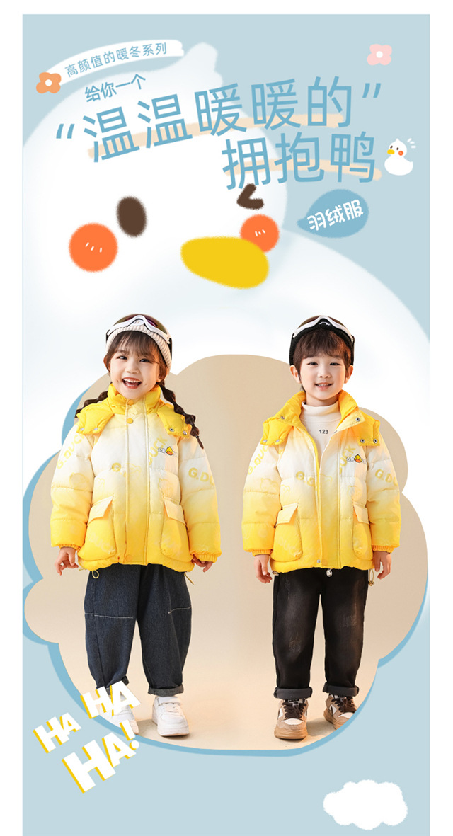 小黄鸭儿童时尚白鸭绒秋冬羽绒服男女童宝宝外套