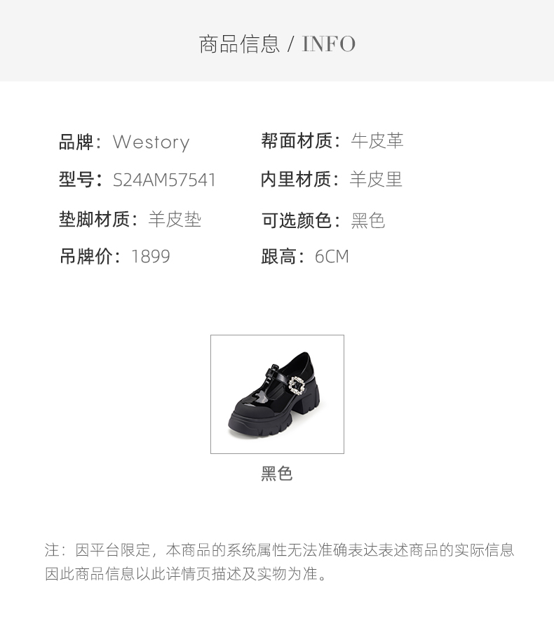 westory2024春季新款低平跟圆头厚底蝴通勤小皮鞋乐福鞋S24AM57541