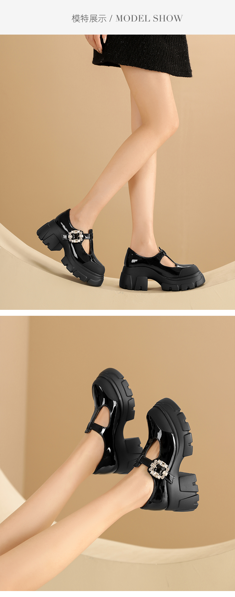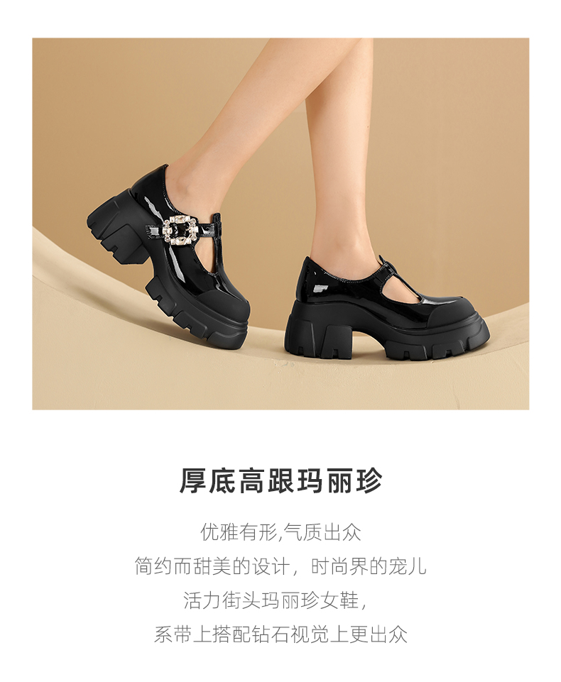 westory2023秋季新款粗跟中跟方头时尚百搭搭扣单鞋S23CE72031