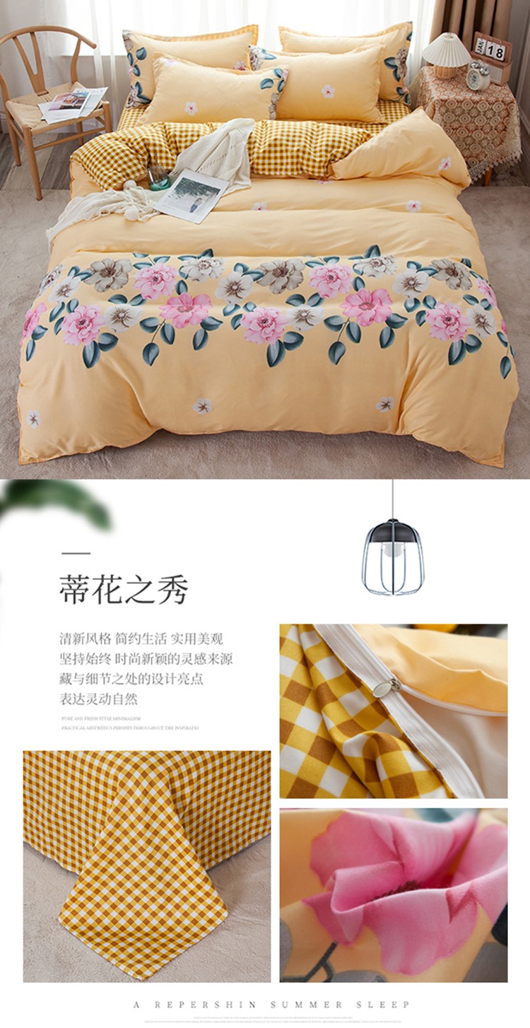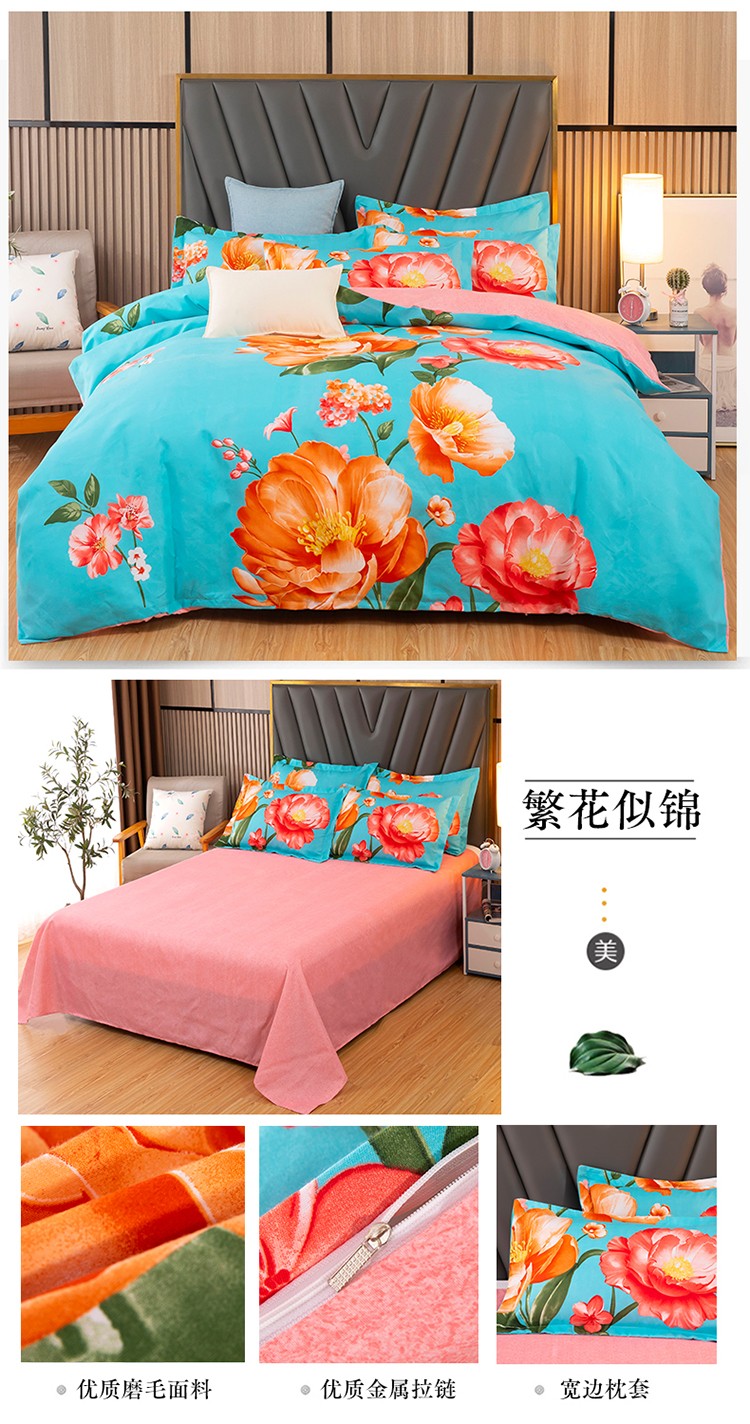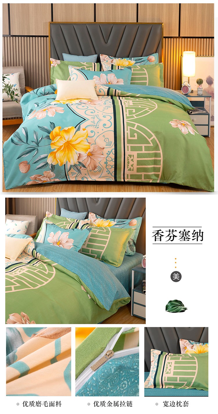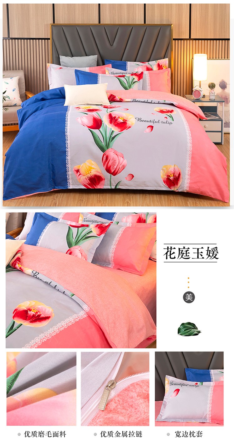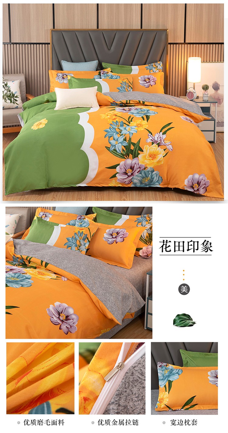 【升级款】磨毛床上四件套升级款 时尚AB双板设计 耐水洗 亲肤舒适 裸睡无负担 吸湿透气
