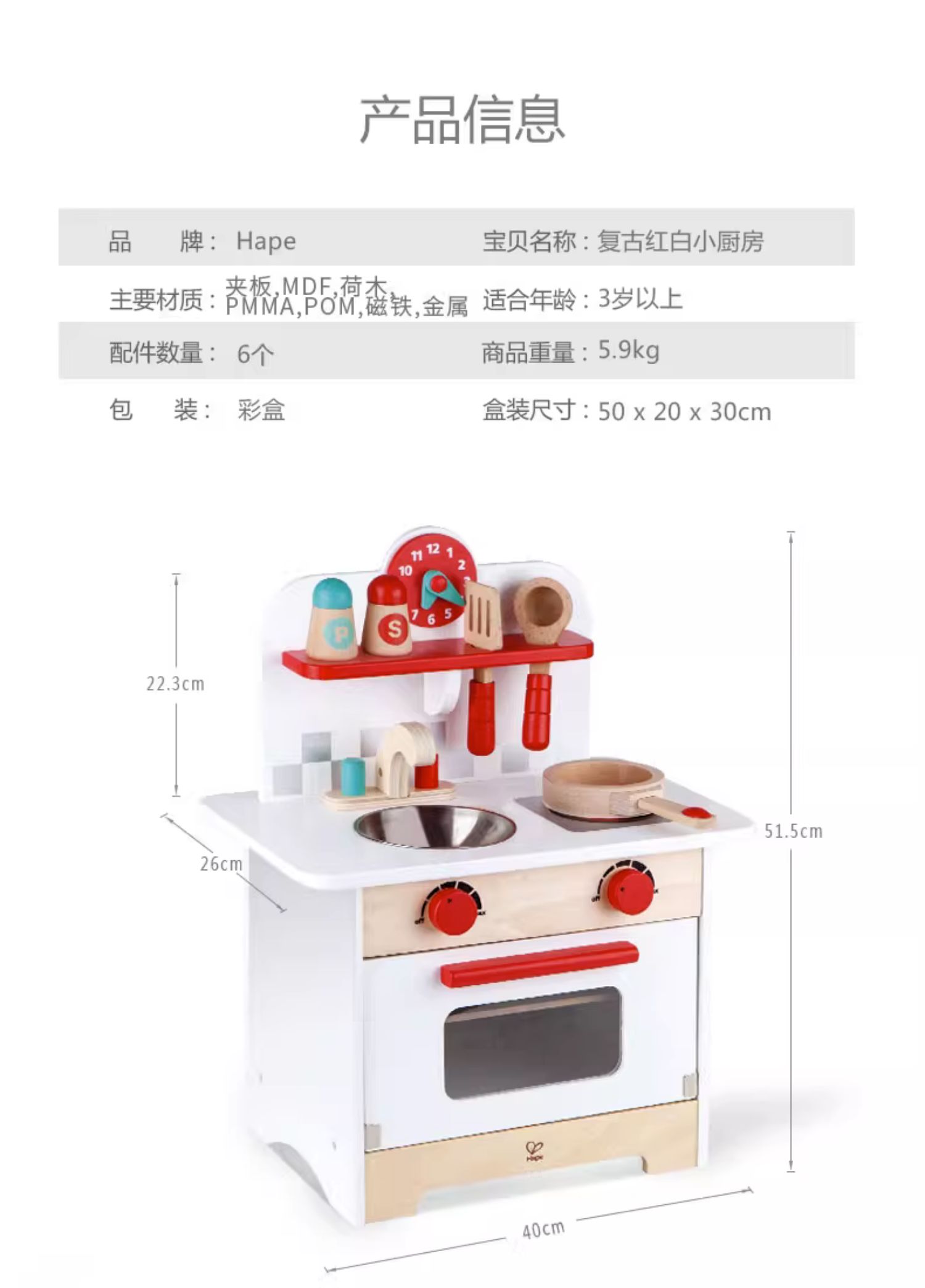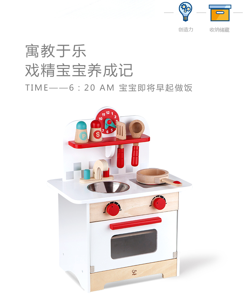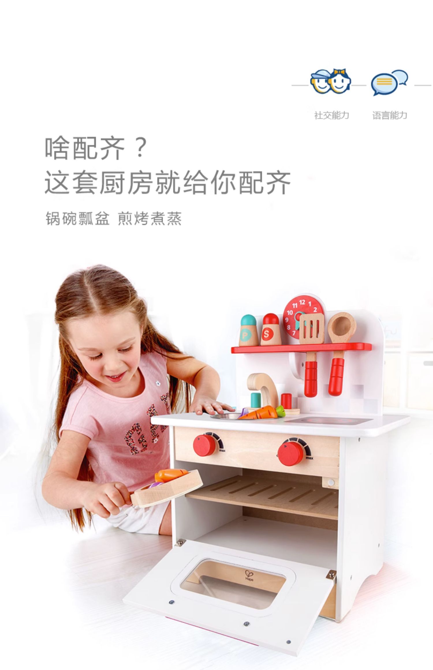 Hape儿童仿真厨具台过家家公主小厨房玩具套装宝宝做饭女孩子3岁