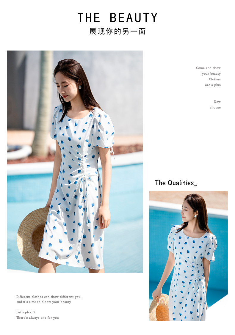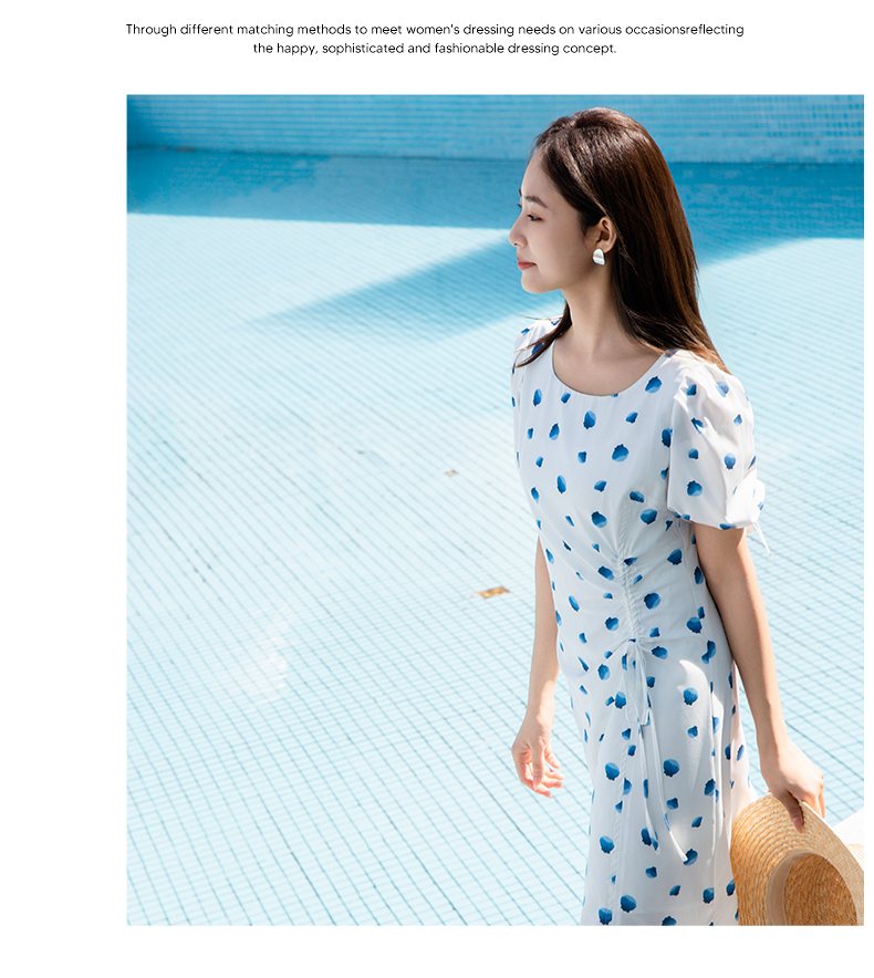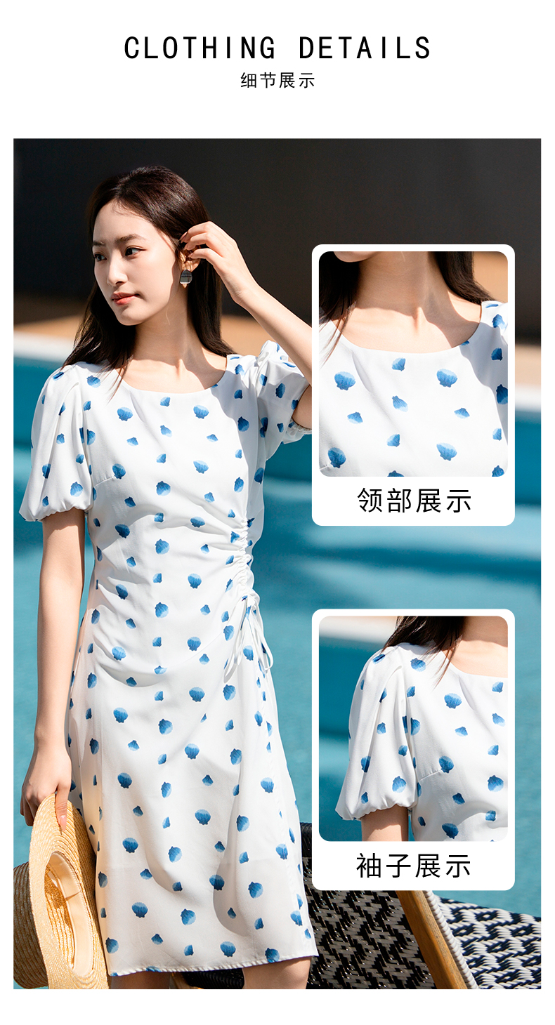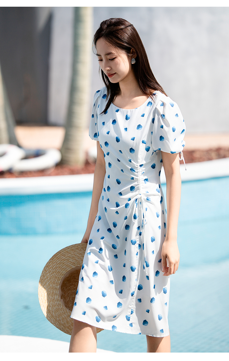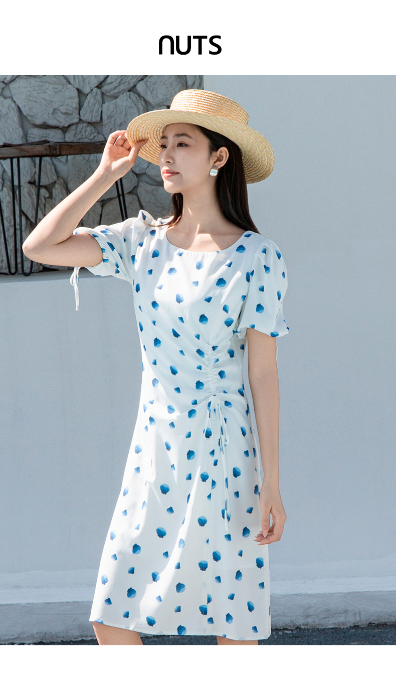NUTS夏季新款气质抽绳茶歇裙甜美波点连衣裙429101352