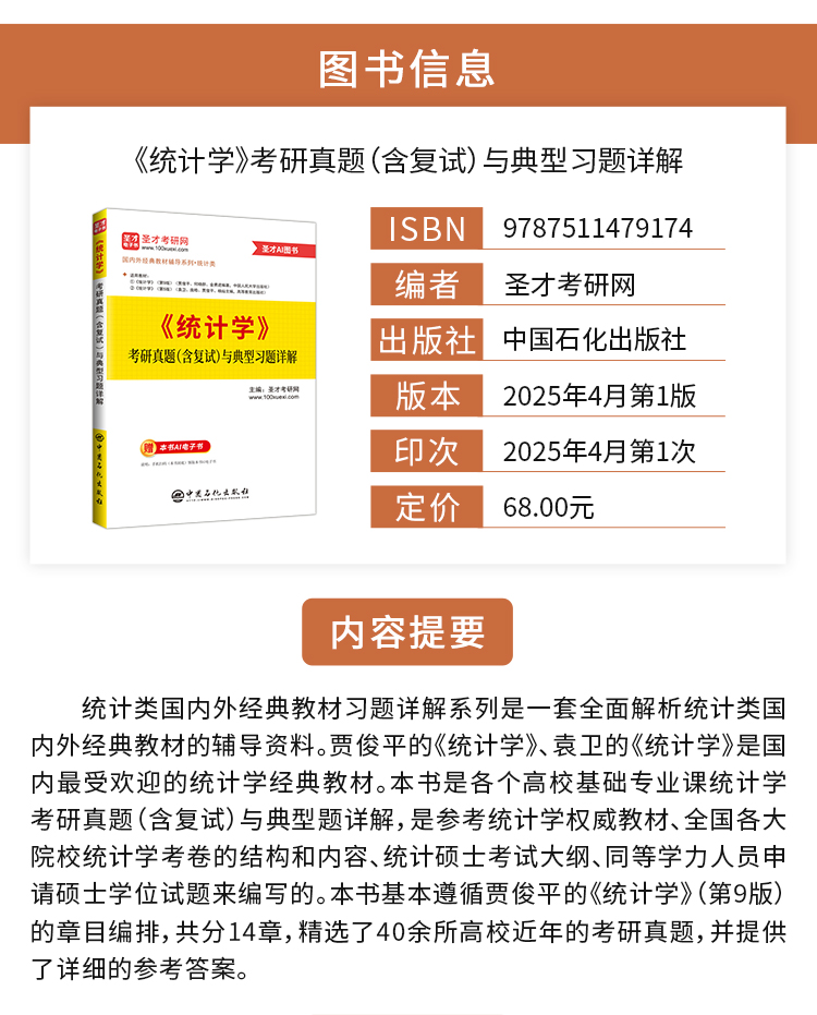 【官方旗舰单】《统计学》考研真题(含复试)与典型习题详解 精选了40余所高校近年的考研真题 圣才考研网