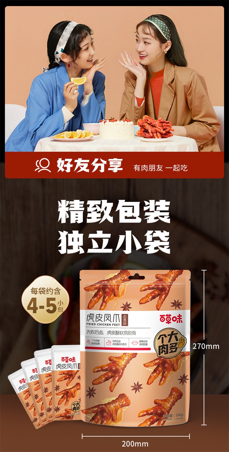 【百草味】虎皮凤爪160g*2袋 香辣味、卤香味