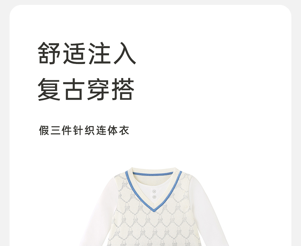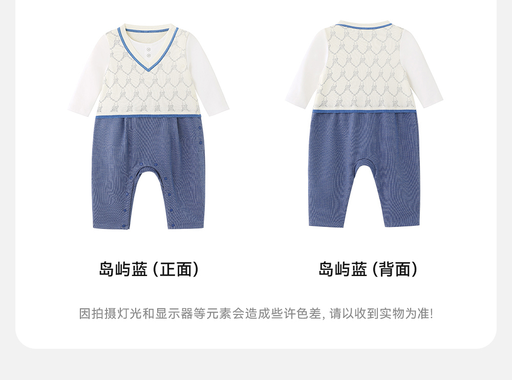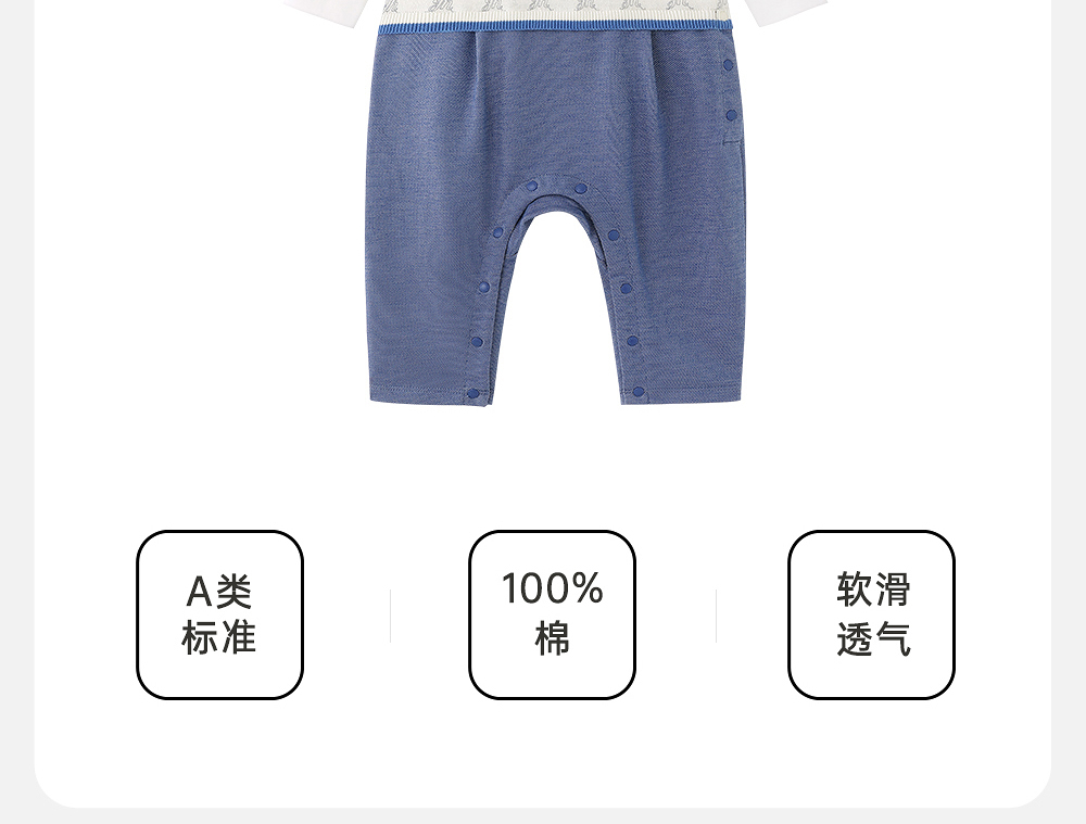 英氏婴儿衣服春夏长袖透气男童连体衣假三件爬服纯棉YRHAJ1R004A