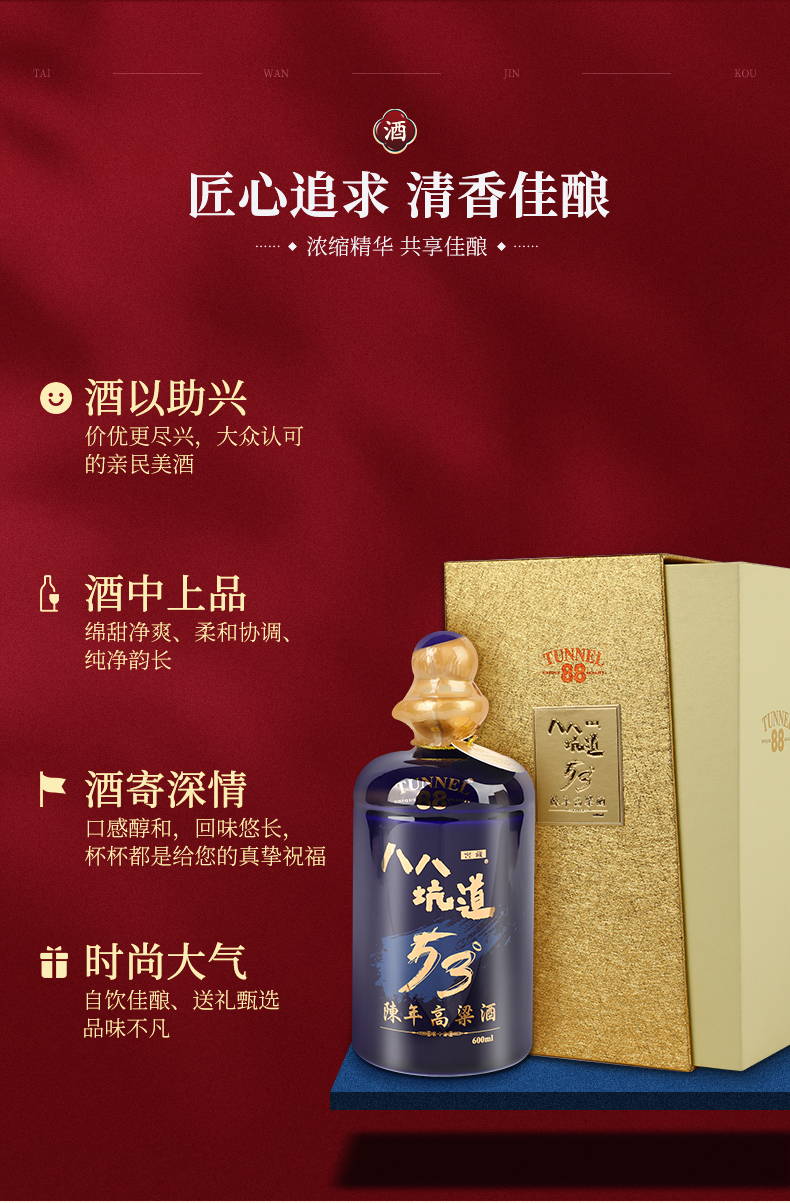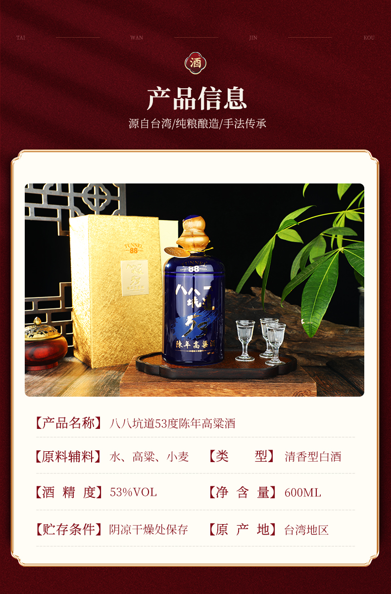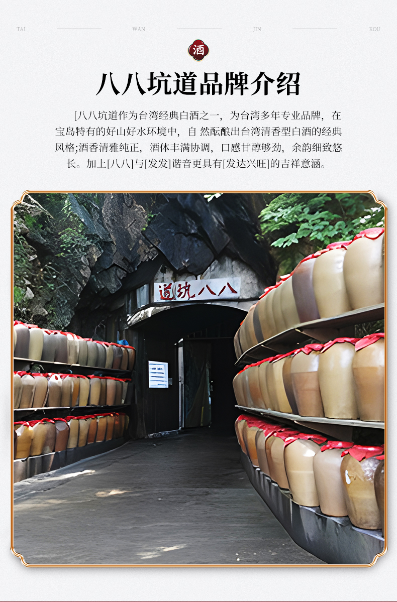 自营(耀金台)-八八坑道台湾经典白酒陈年53度高粱酒 600ml/瓶