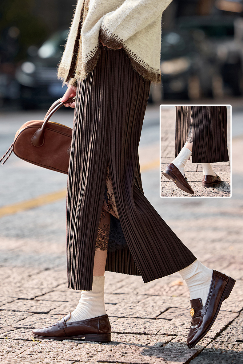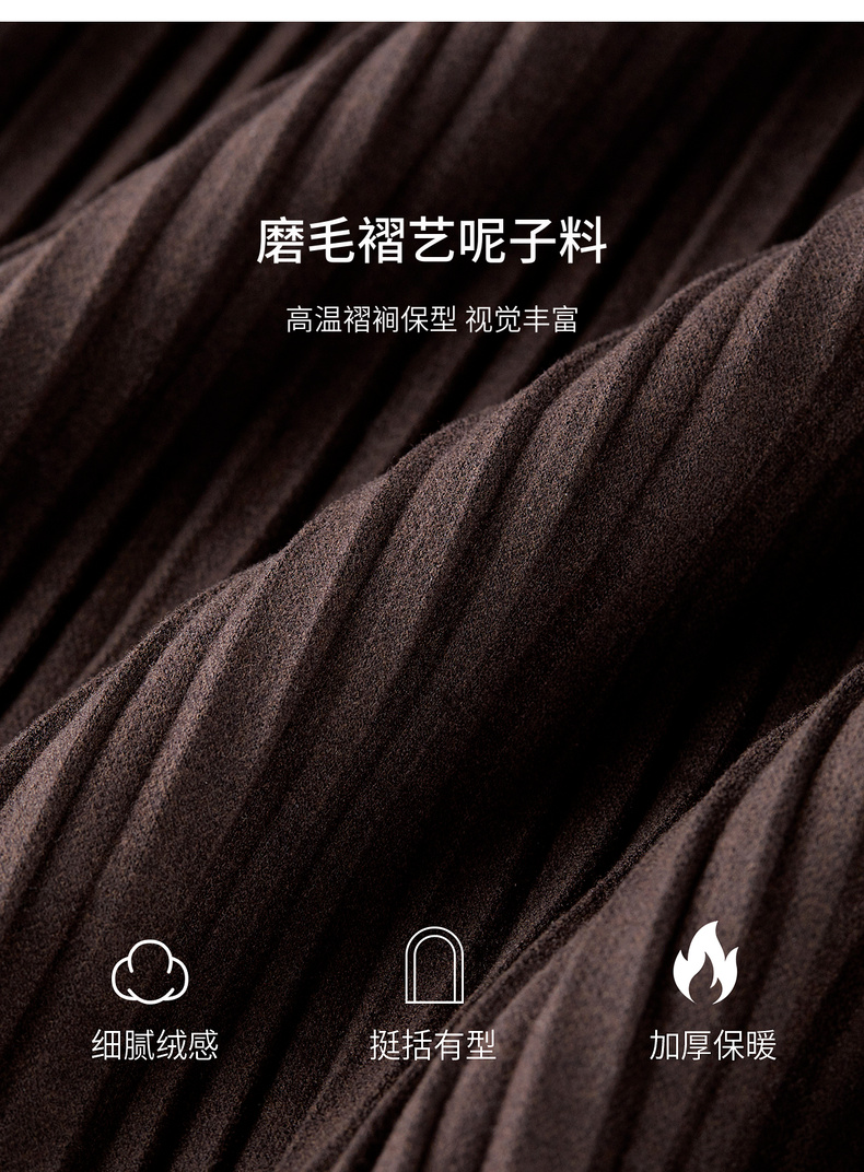【内购】【开叉拼接蕾丝】优雅通勤竖纹肌理磨毛加厚保暖两穿直筒百褶裙-W54QF4859