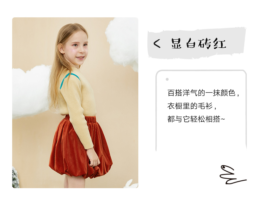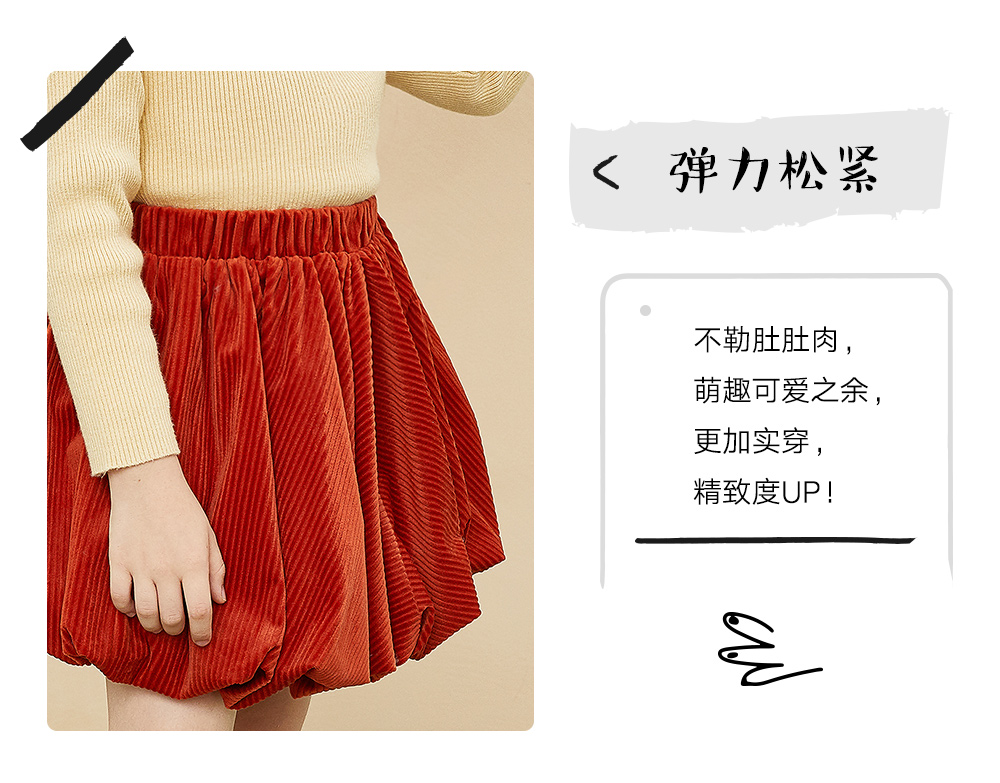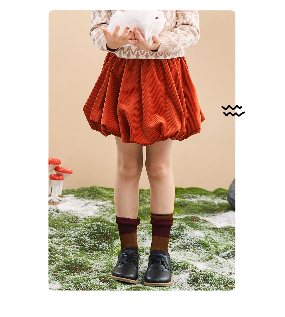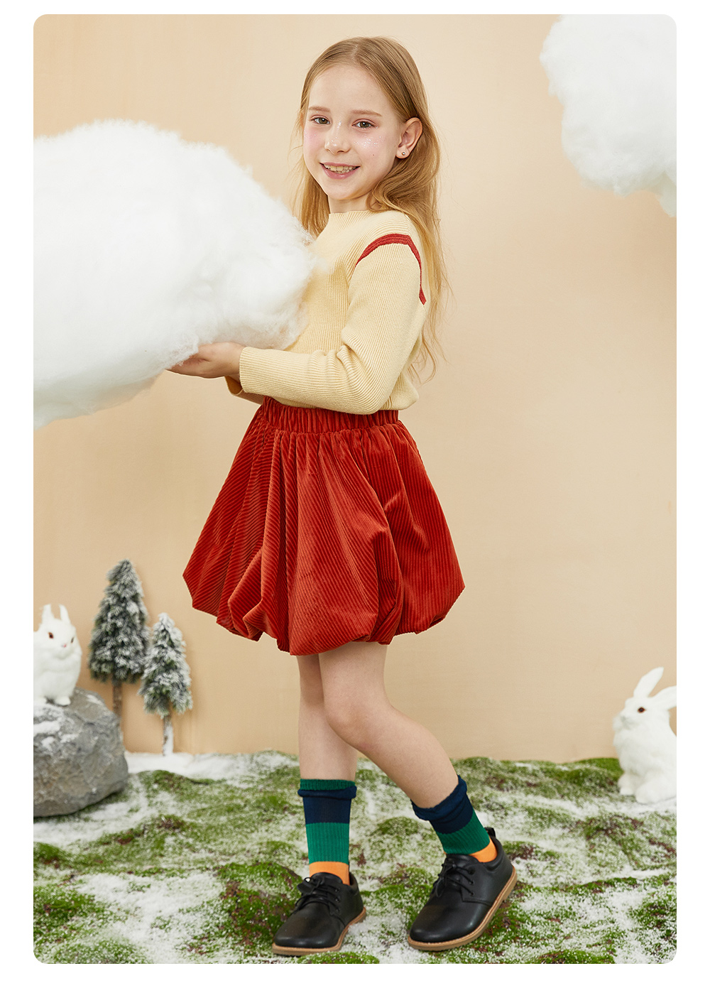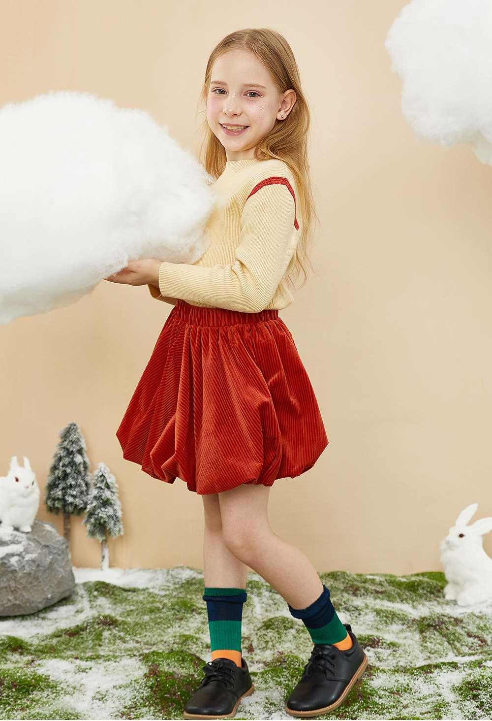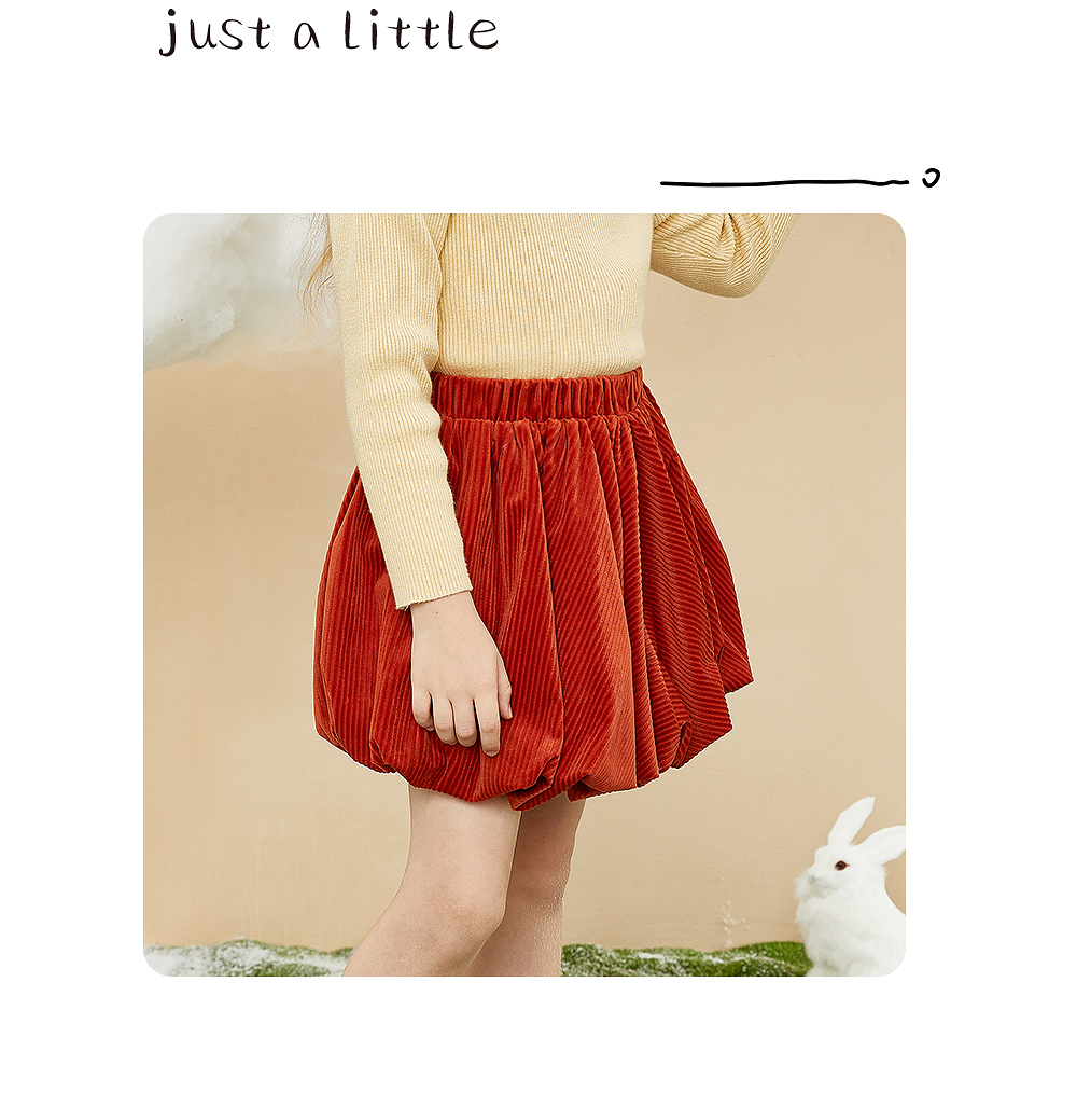 littletime童装蓬蓬裙 2020冬新款砖红复古灯芯绒花苞裙A字半身裙