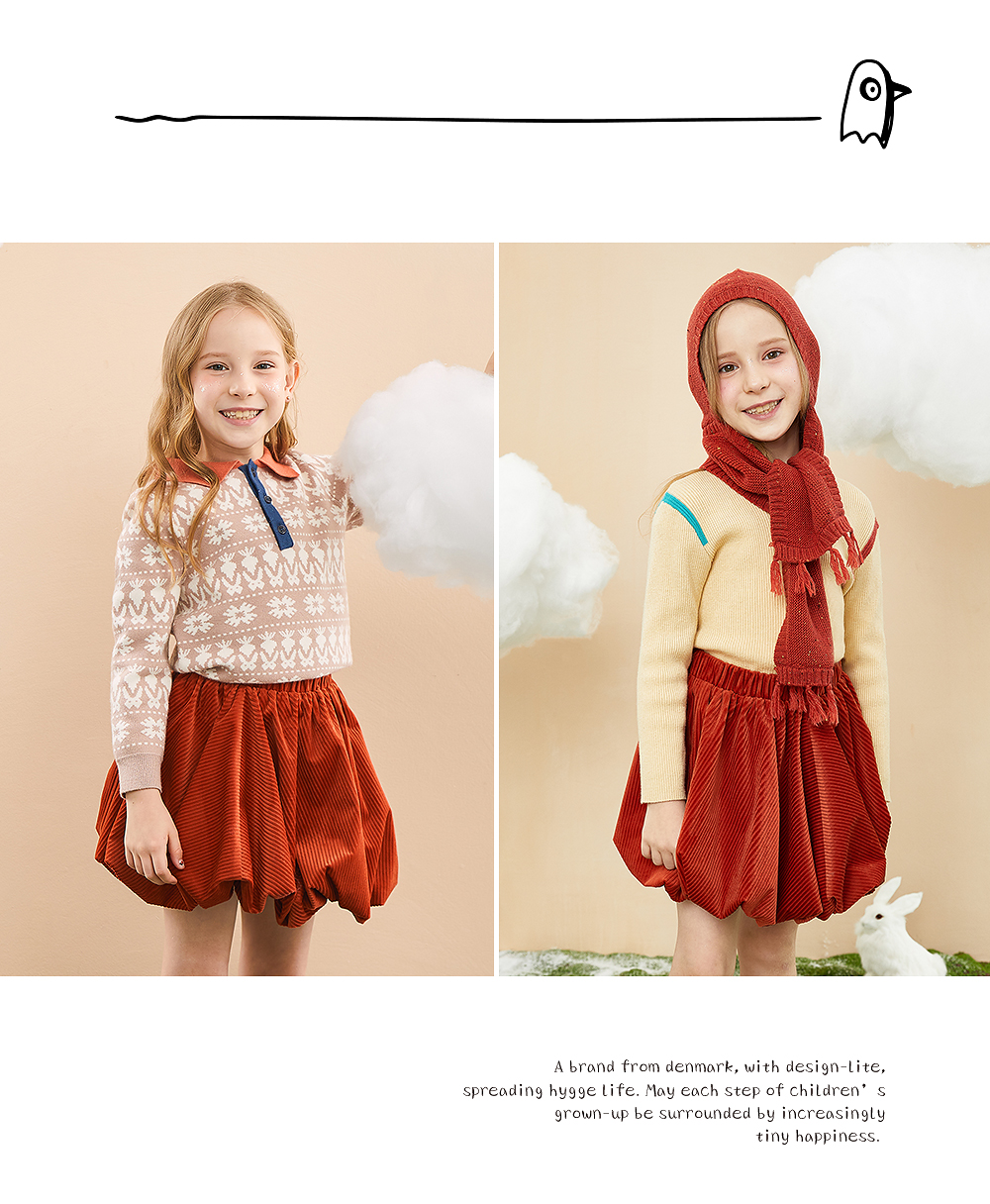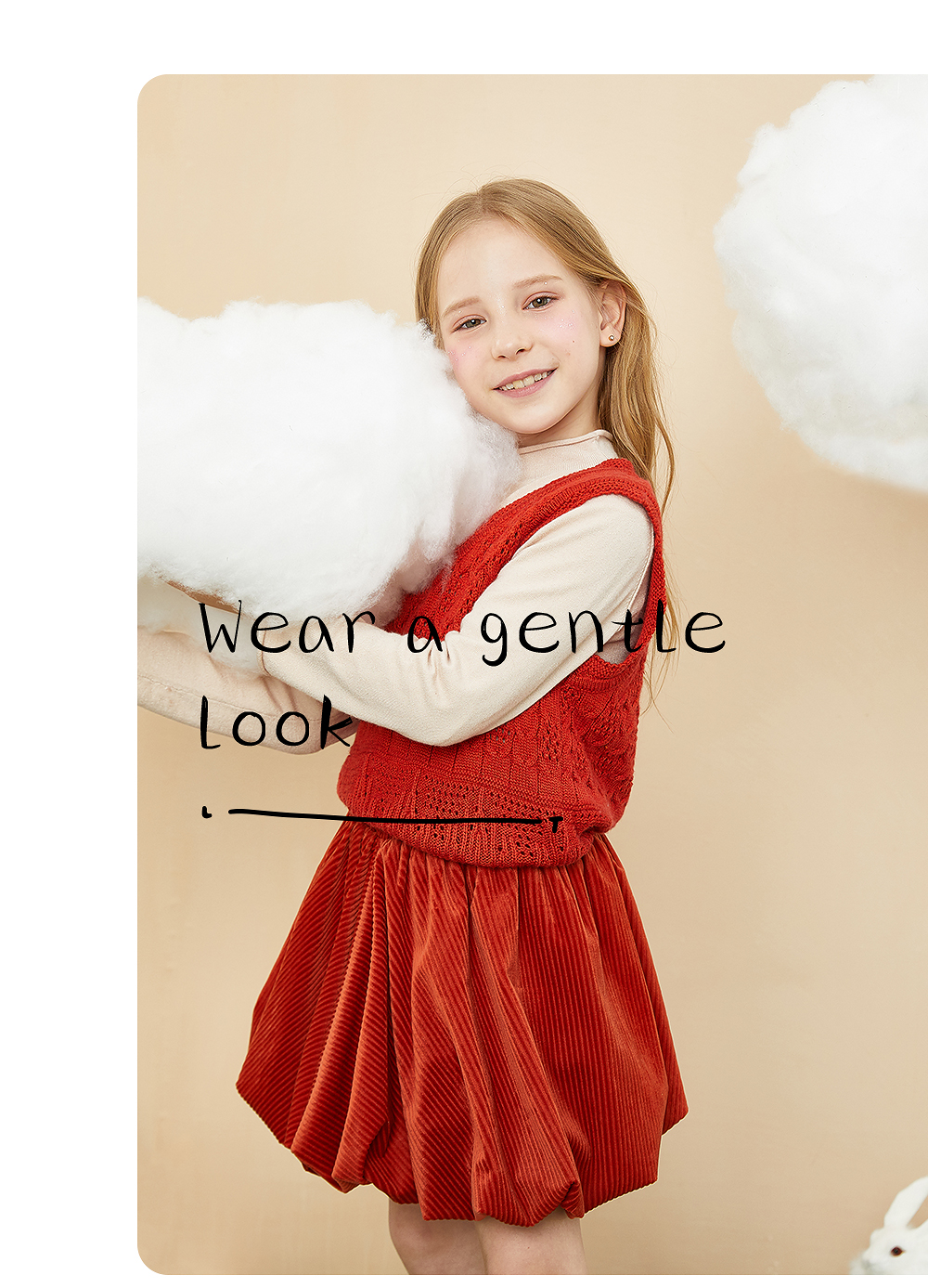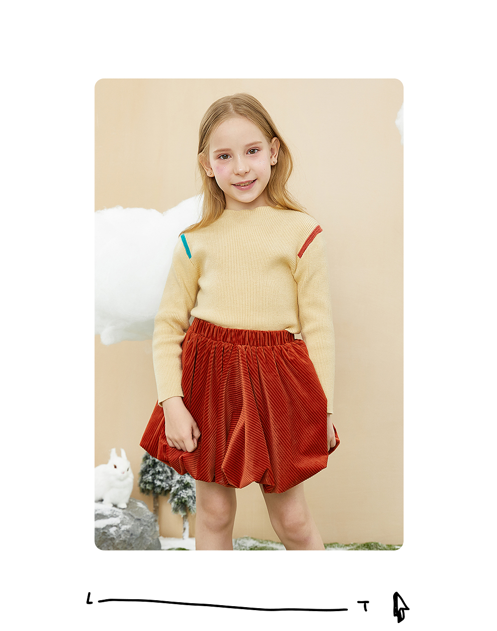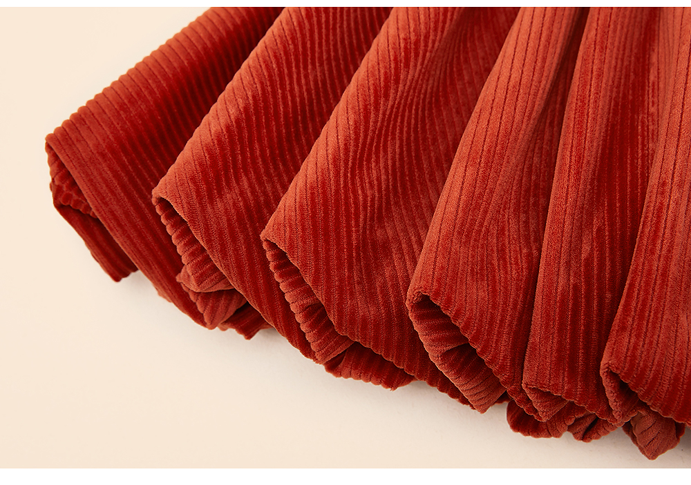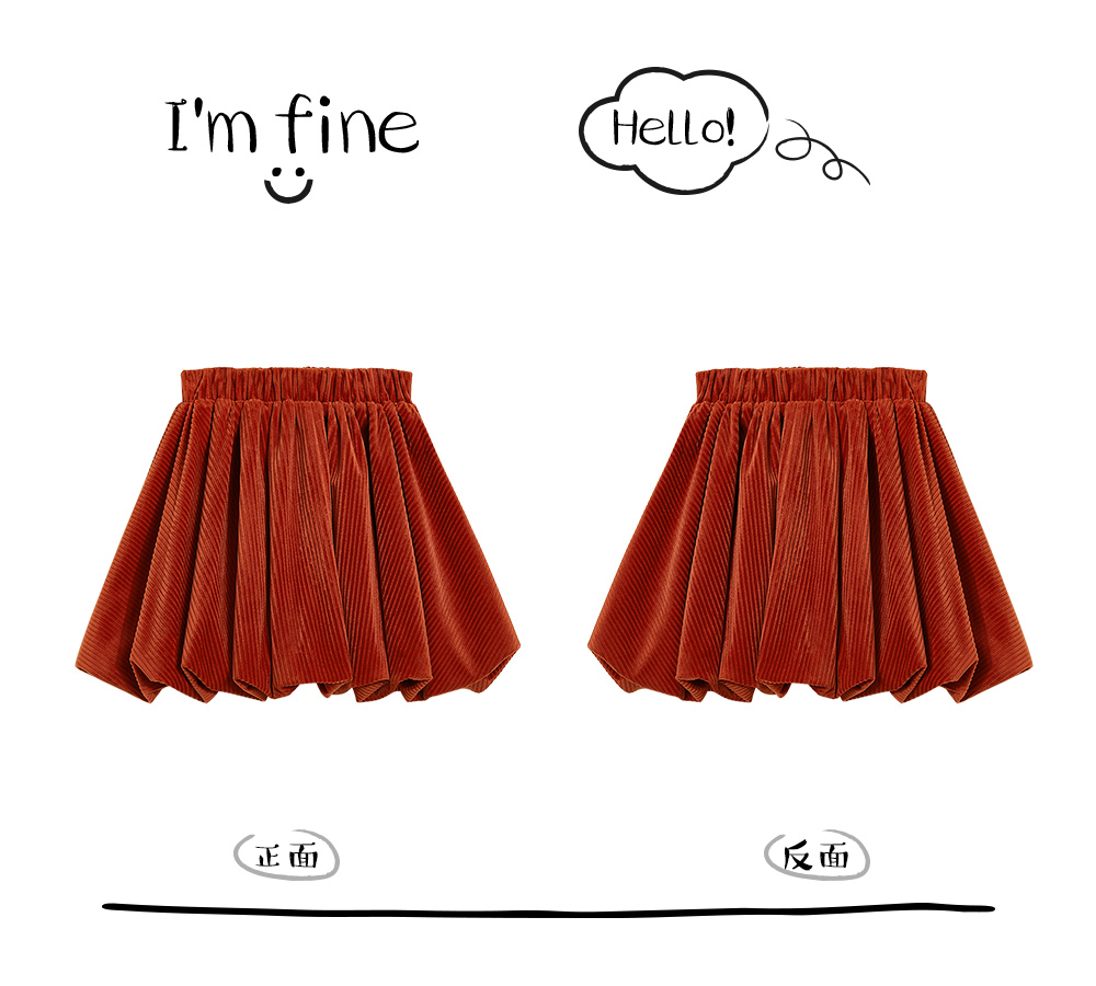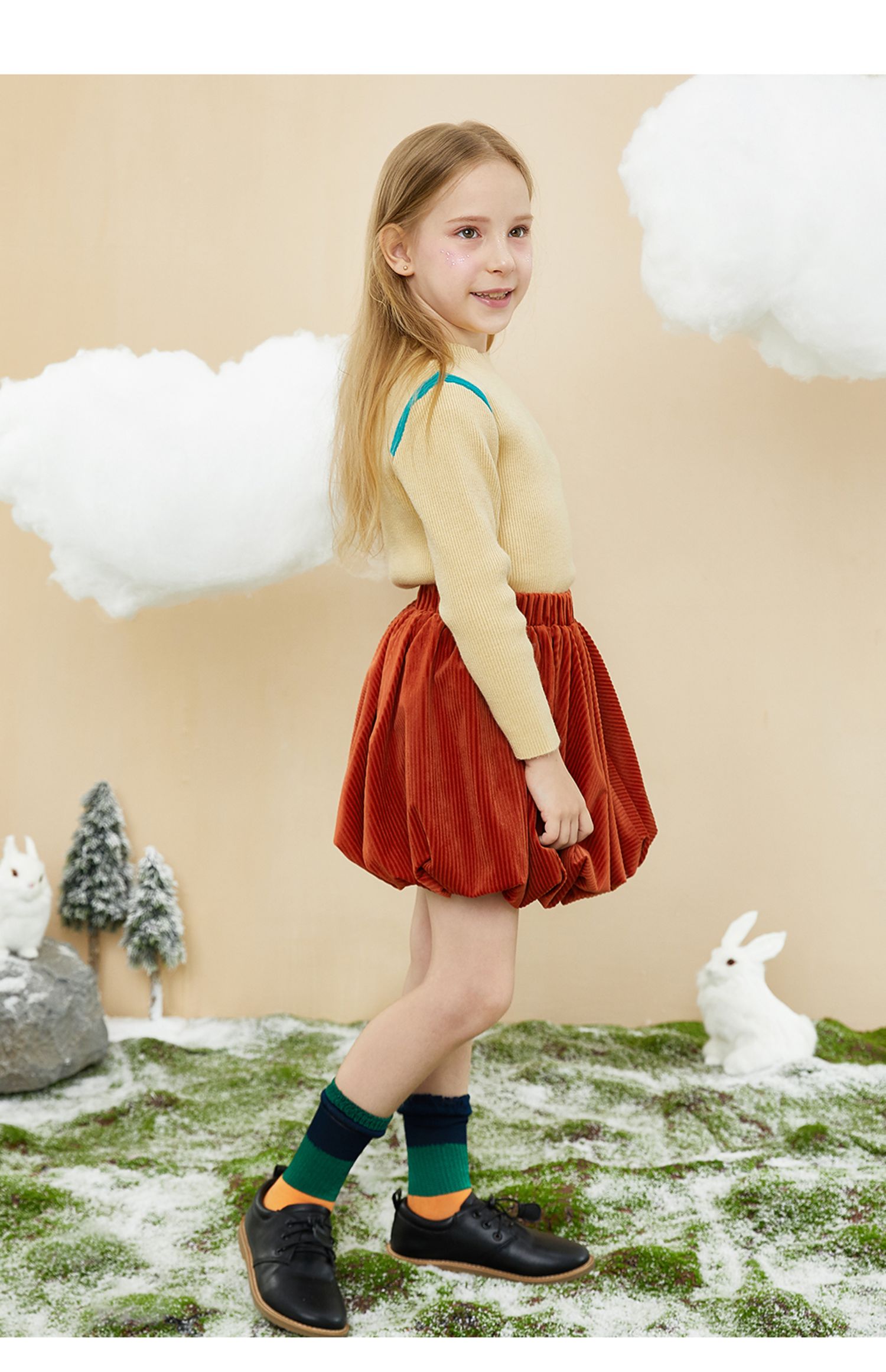 littletime童装蓬蓬裙 2020冬新款砖红复古灯芯绒花苞裙A字半身裙