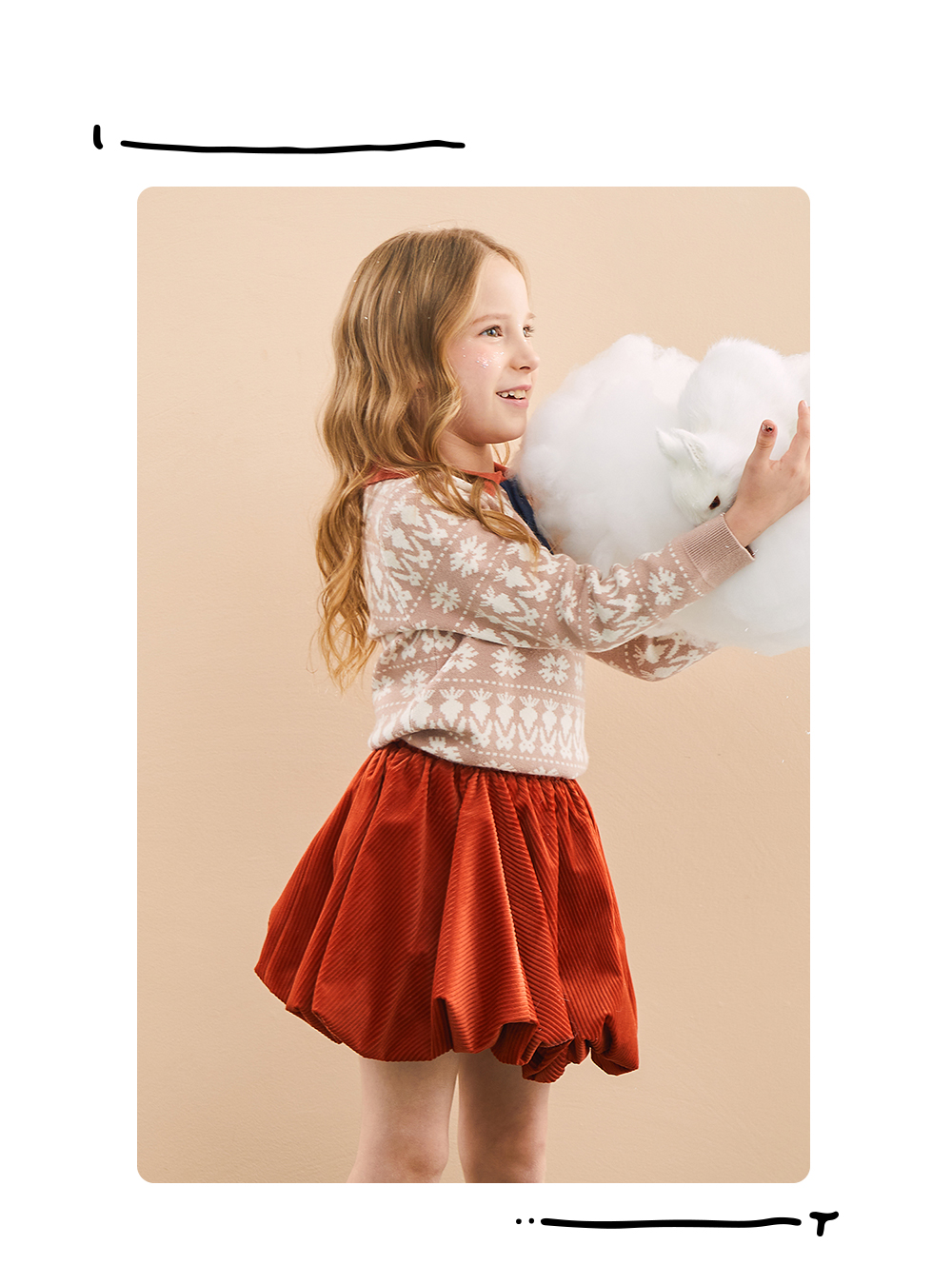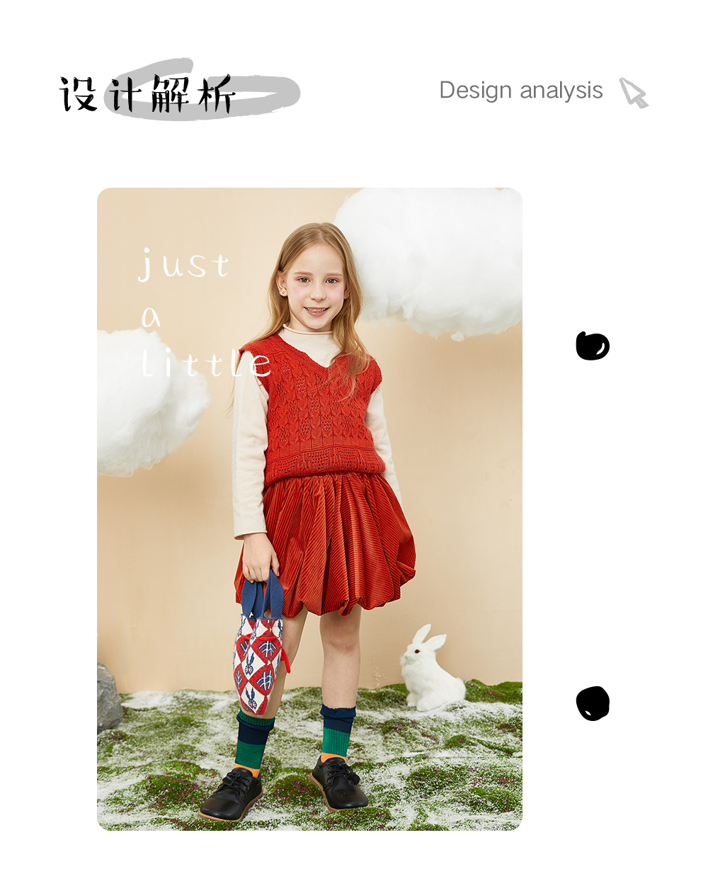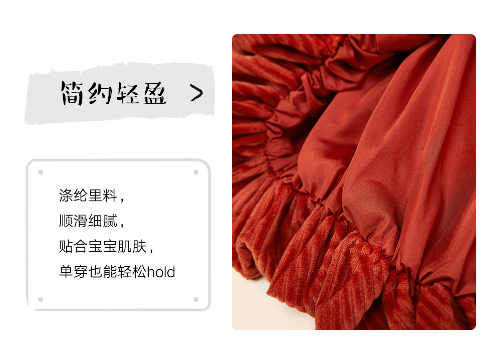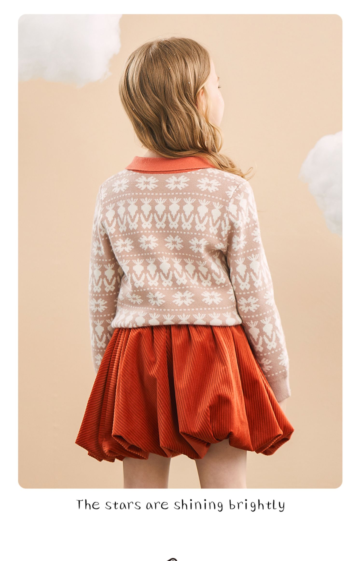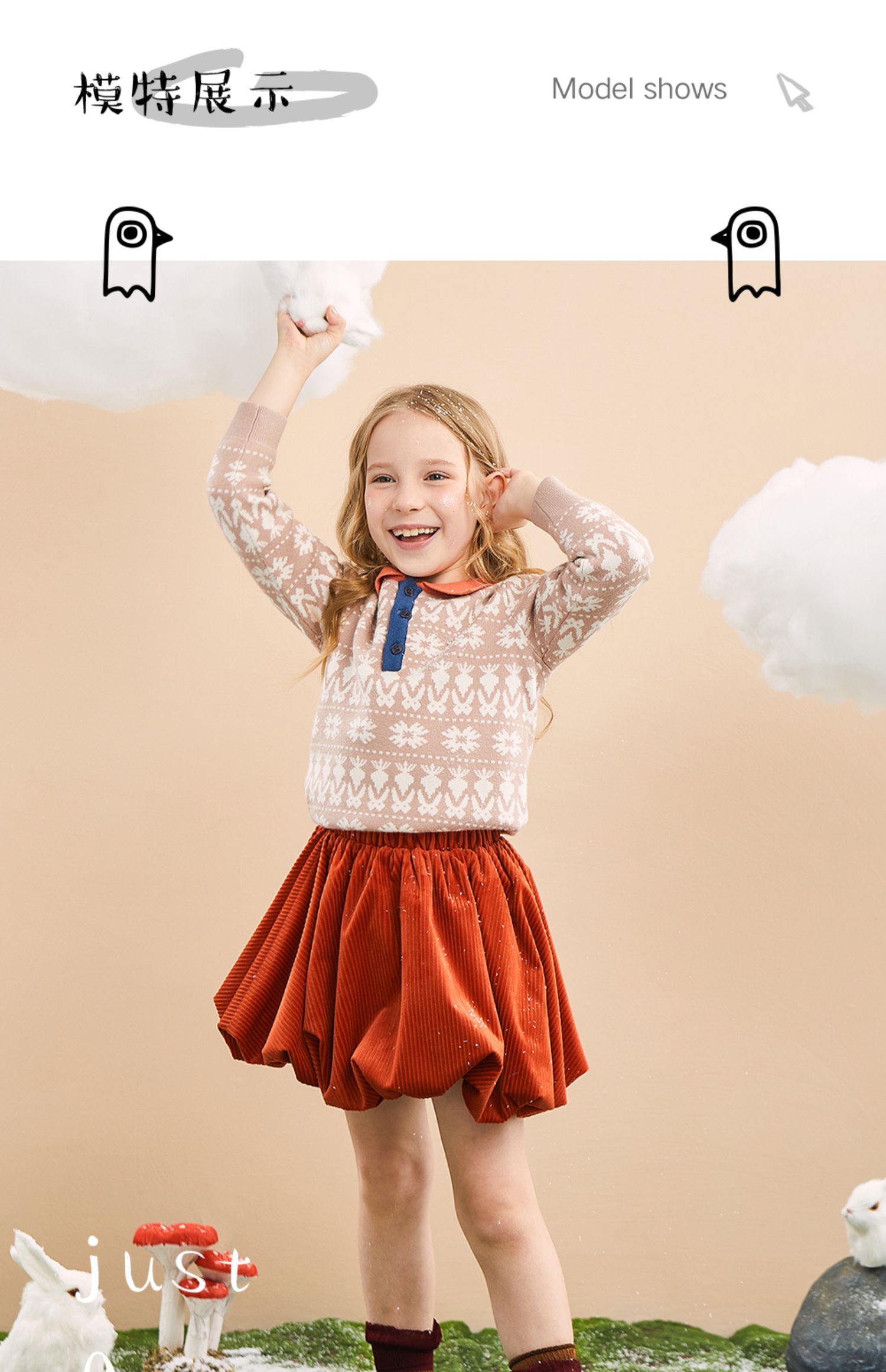 littletime童装蓬蓬裙 2020冬新款砖红复古灯芯绒花苞裙A字半身裙