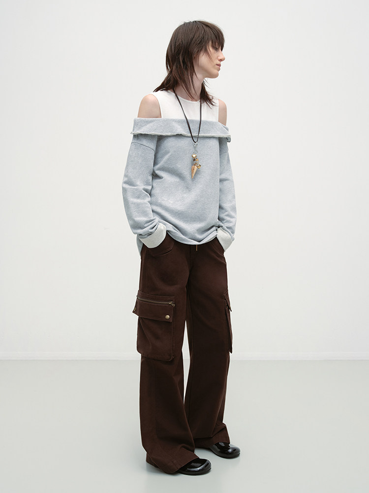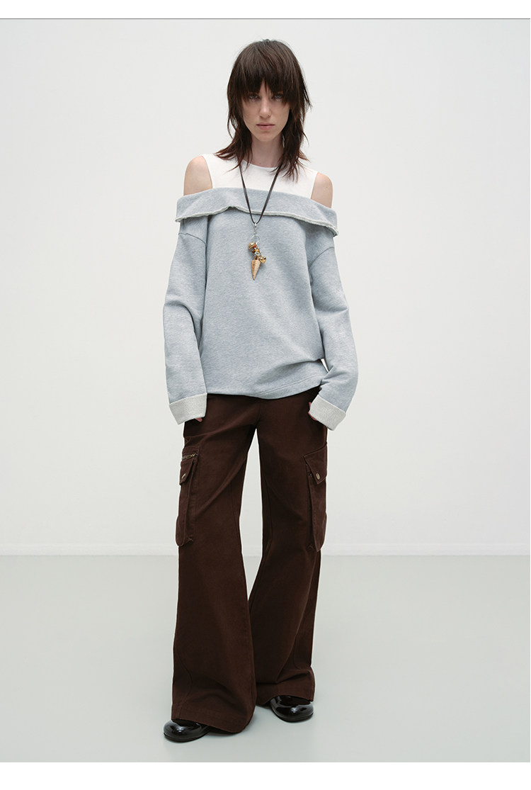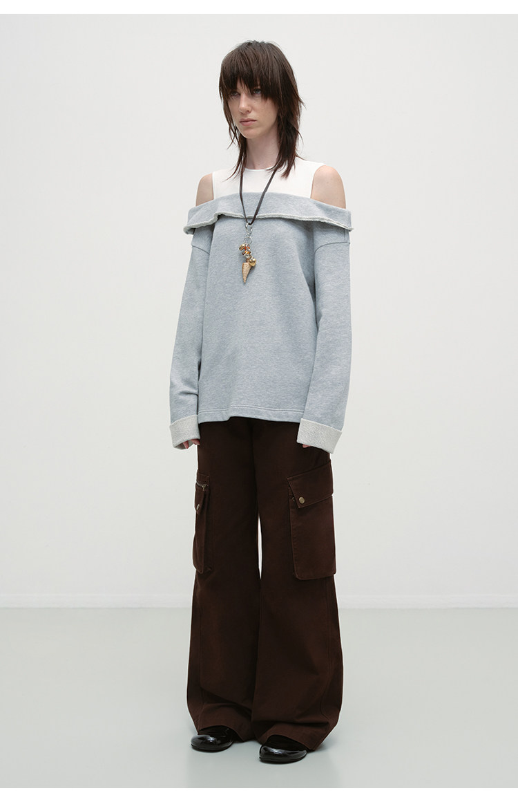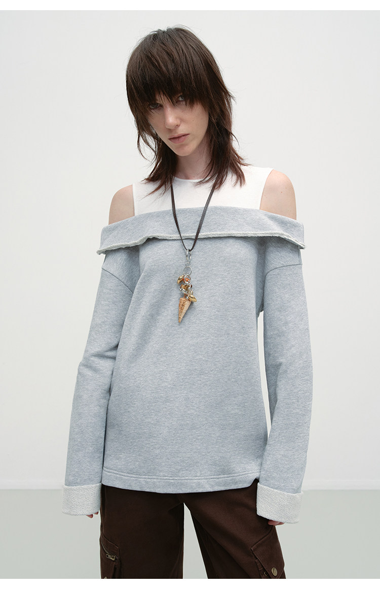 出逃赤岗西/25AWS15/设计感假两件拼接套头卫衣