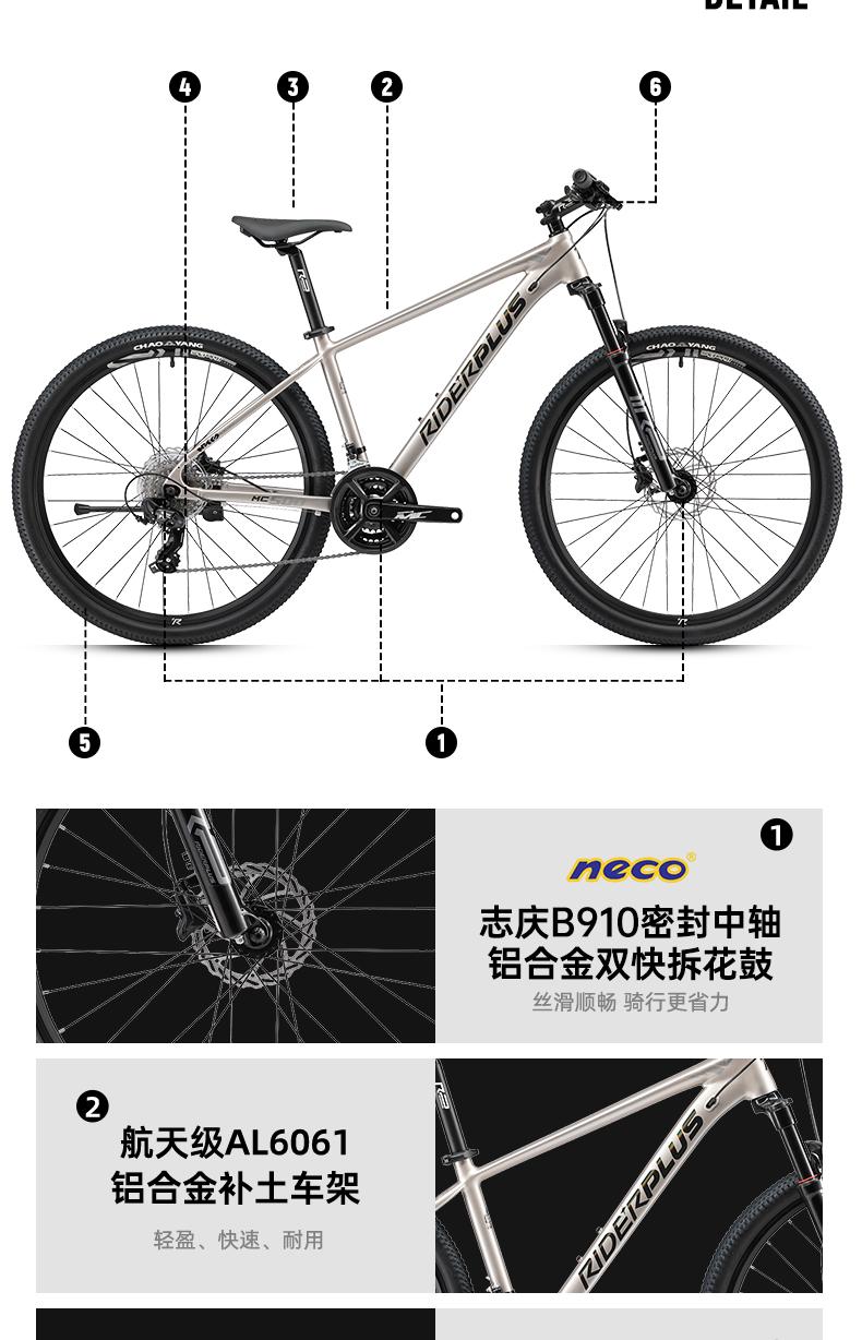 RIDERPLUS骐行家MC500山地自行车铝合金24速油碟成人27.5寸山地车