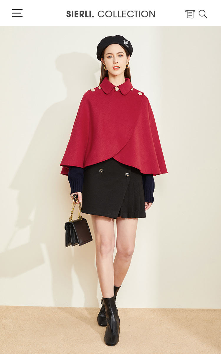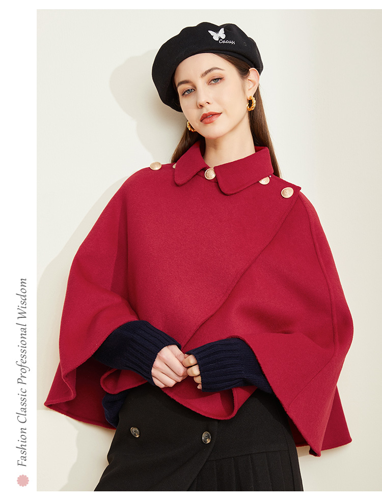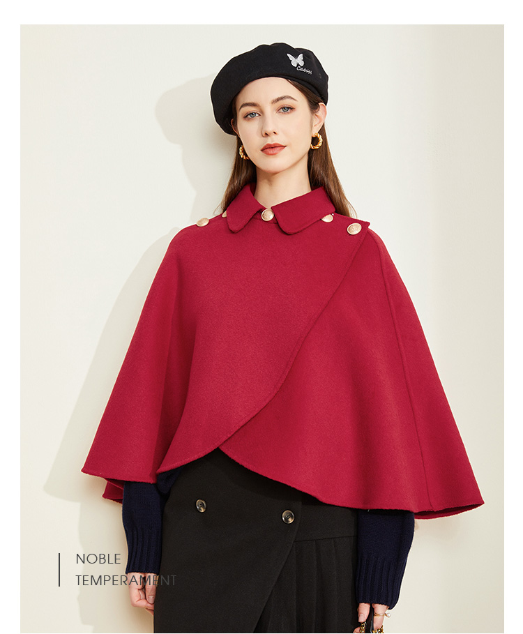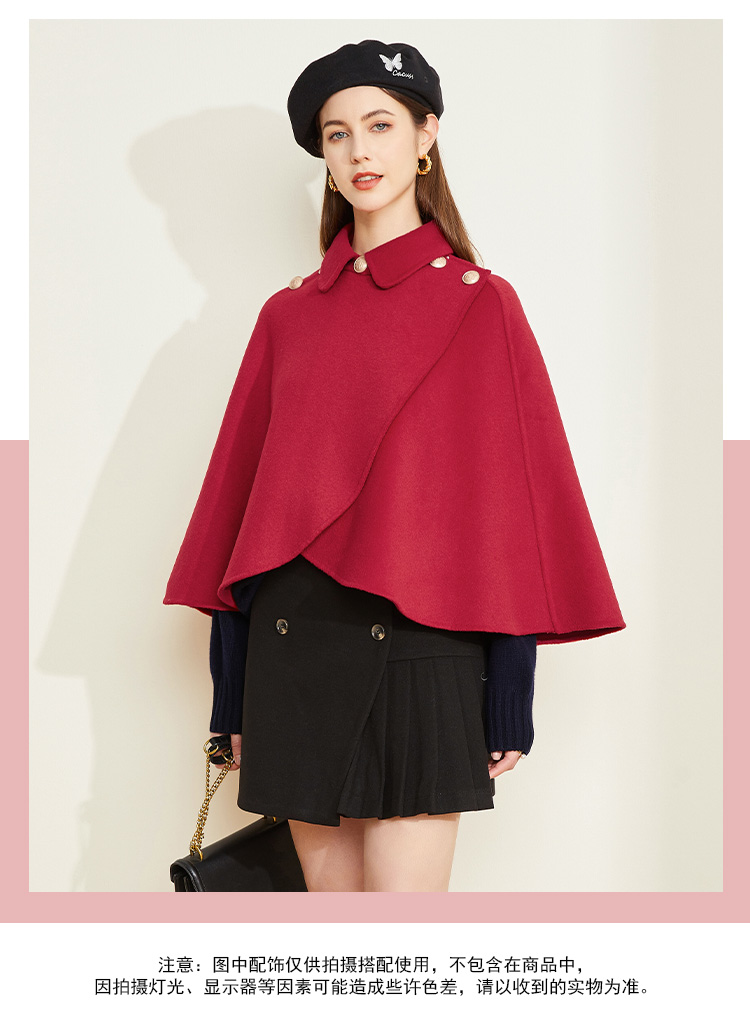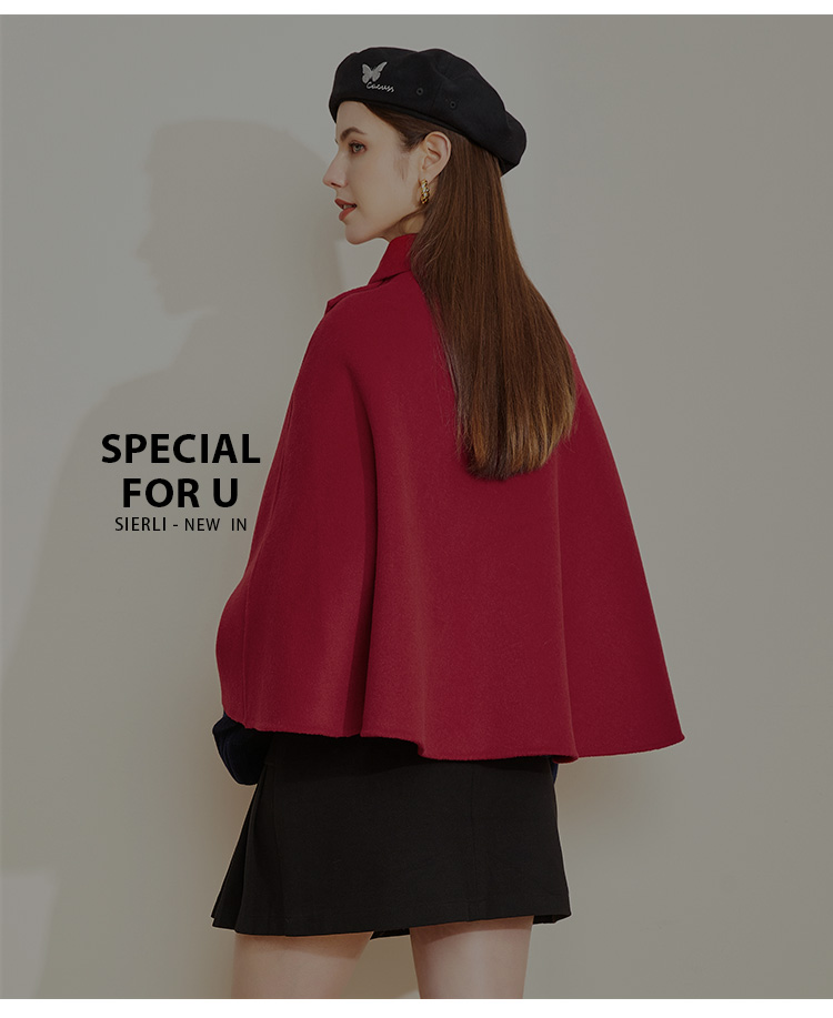 LH9L6斯尔丽2021瑟俪秋冬新款摩登气质斗篷款双面呢披肩式短款女式大衣