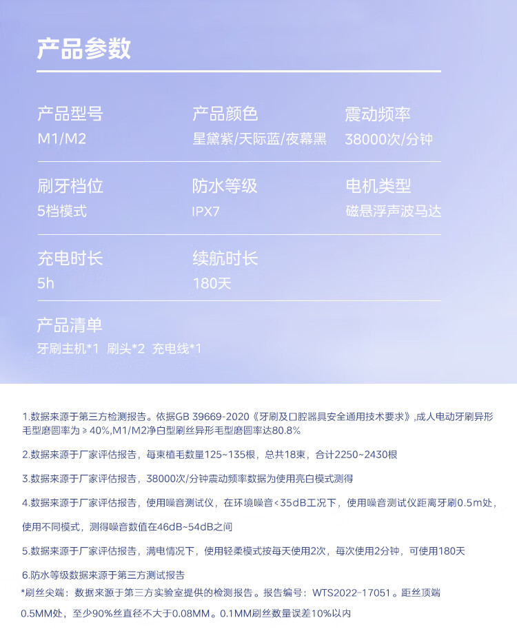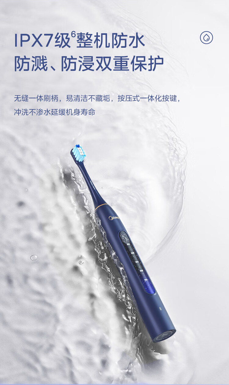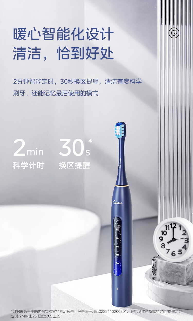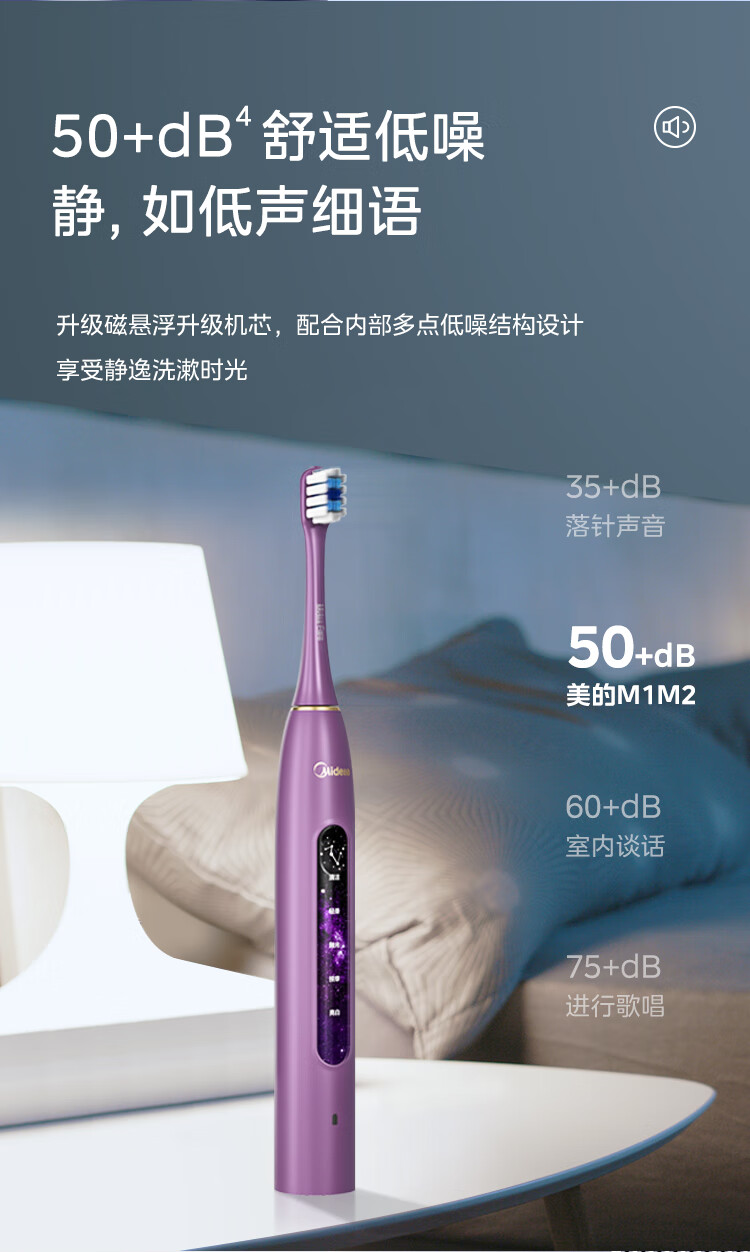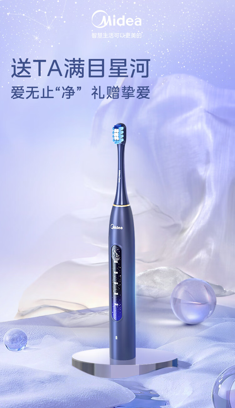 美的(Midea)m2 电动牙刷成人声波震动 180天长续航 智能换区提醒 礼物送男友 软毛刷头*2