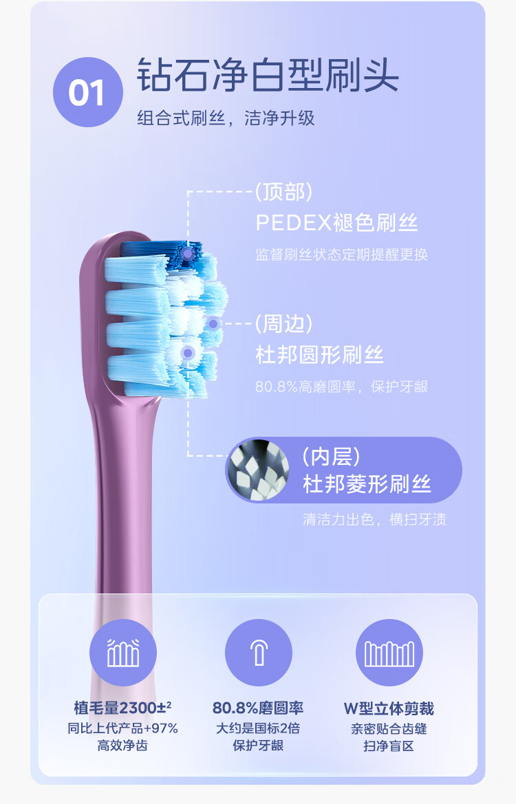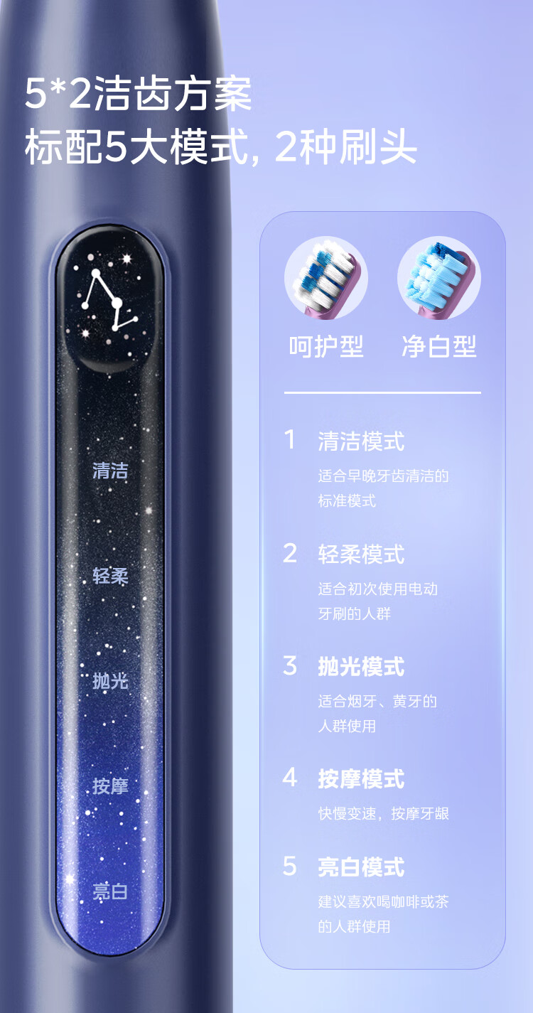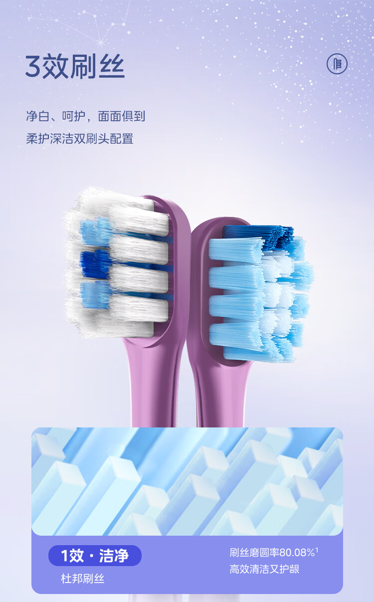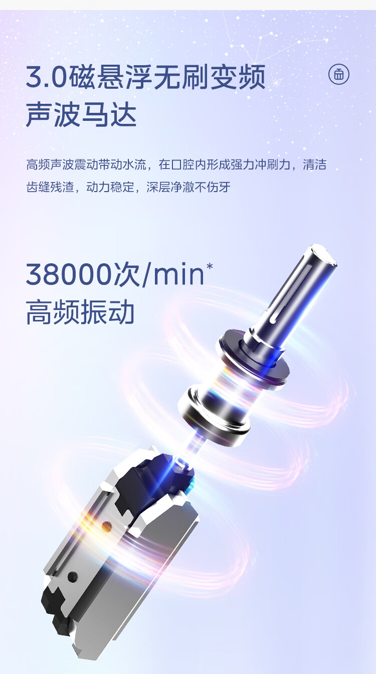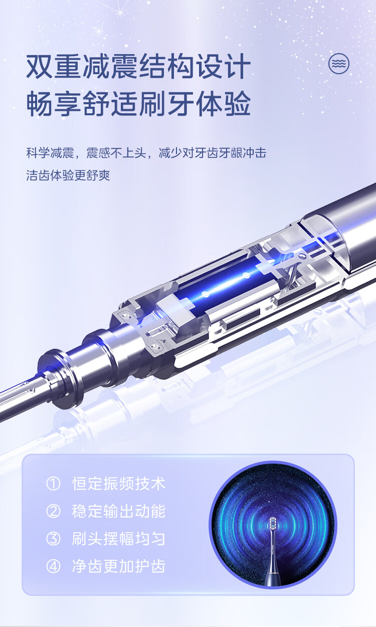 美的(Midea)m2 电动牙刷成人声波震动 180天长续航 智能换区提醒 礼物送男友 软毛刷头*2