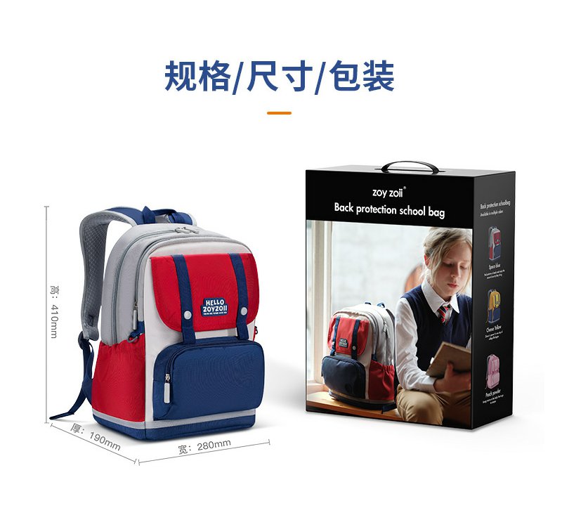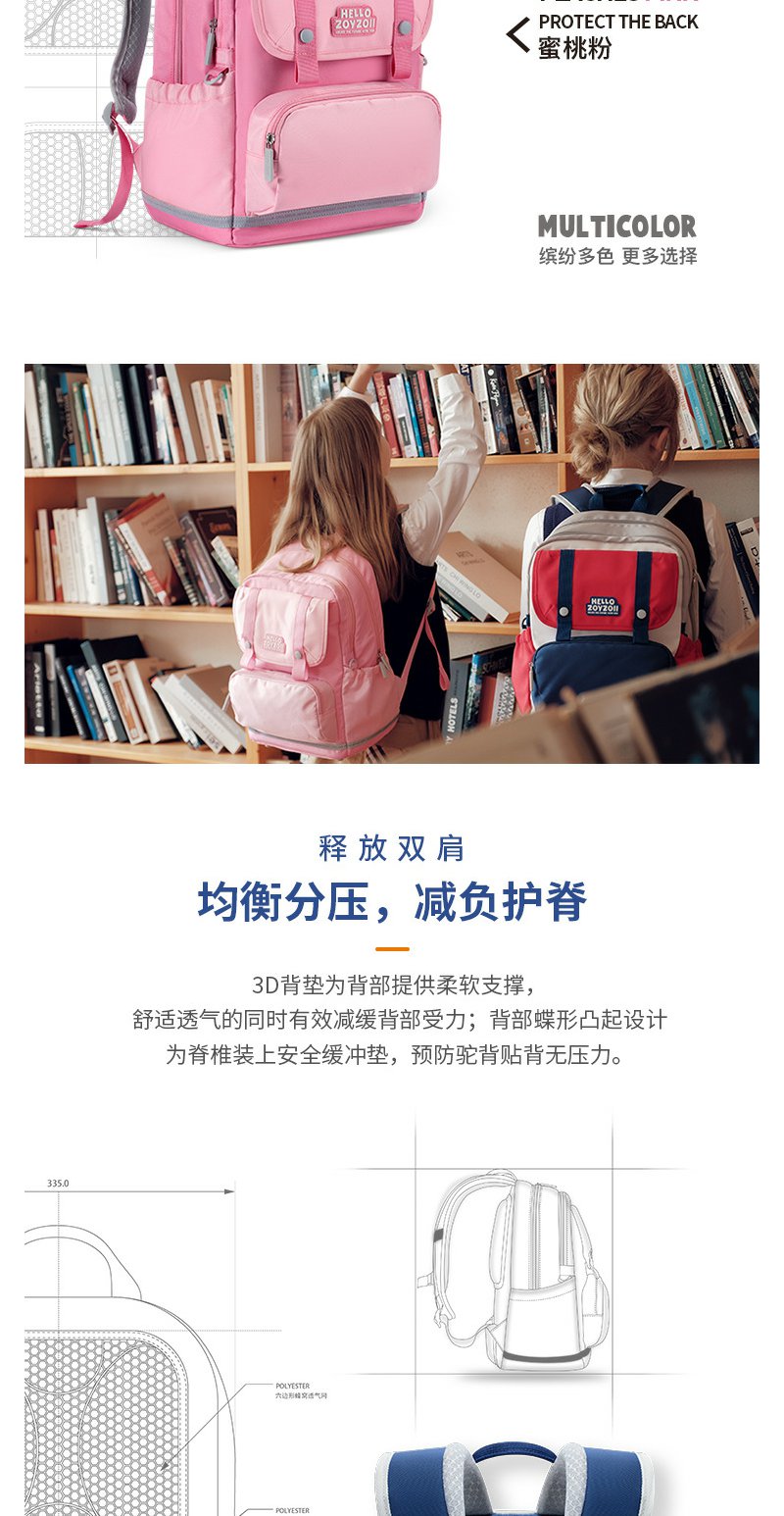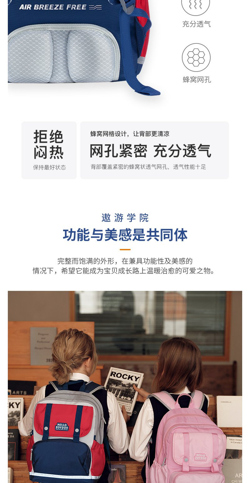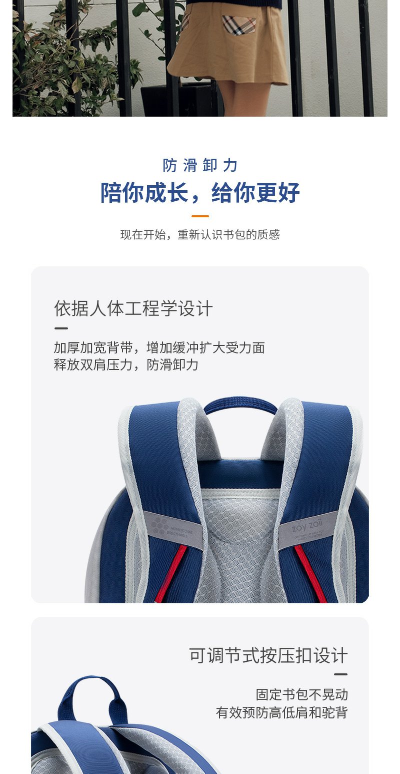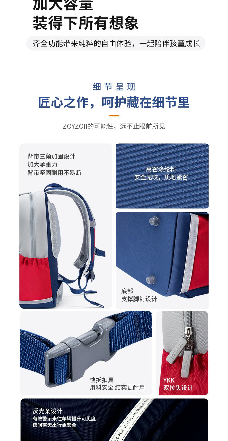 ZOYZOII儿童双肩背书包简约轻便护脊防水透气大容量小学456高年级