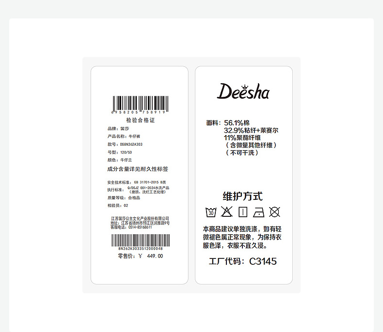 笛莎/Deesha 2026年春季新款女童弯刀牛仔裤