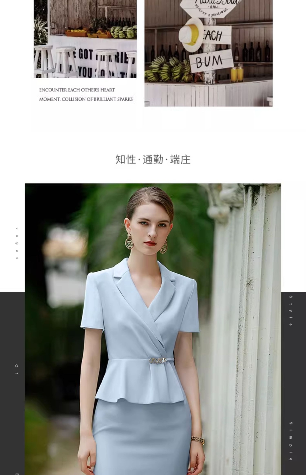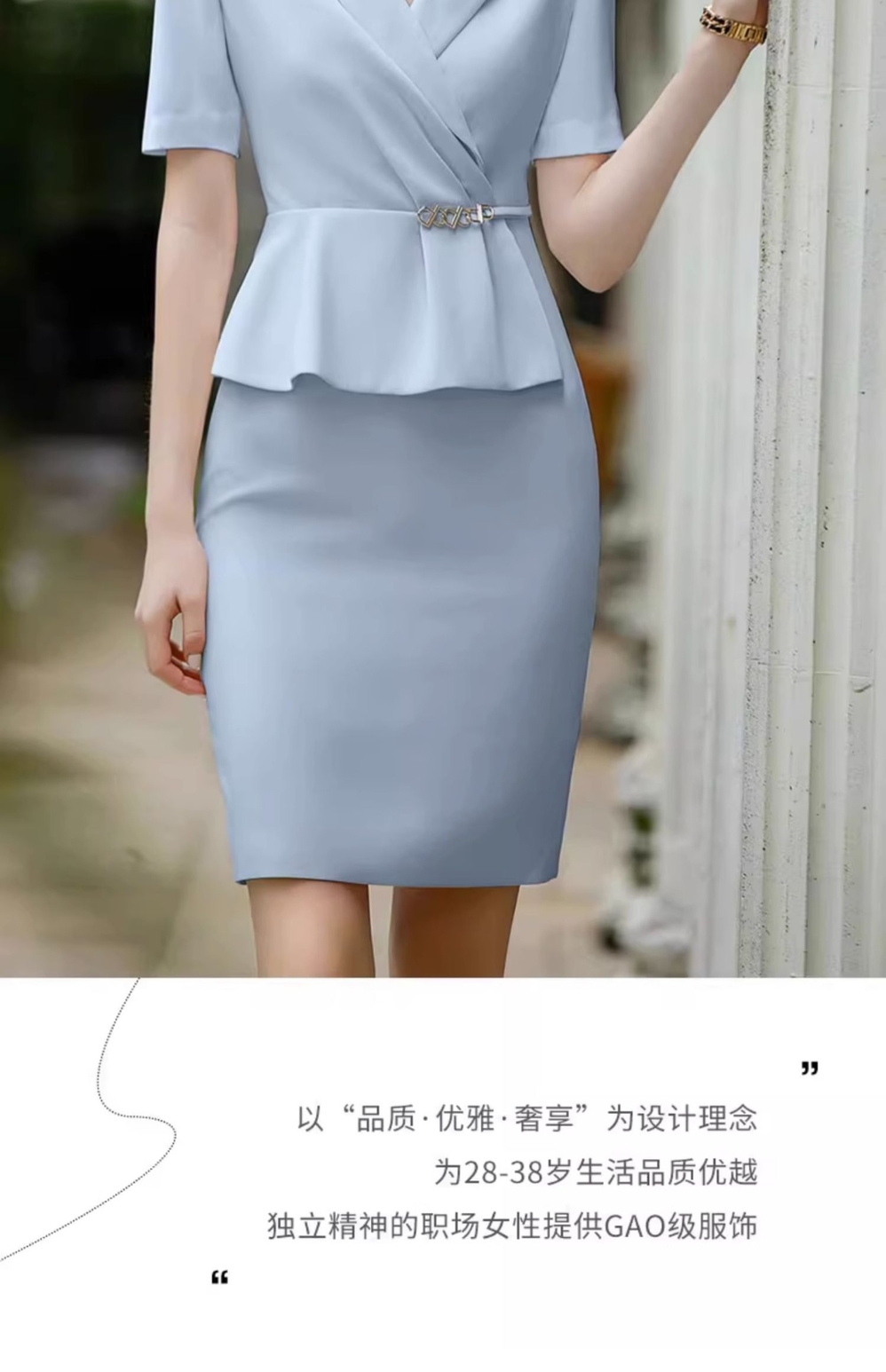 IWY/气质蓝色短袖西装连衣裙女薄款夏季职业装套裙高级感医美工装Q944