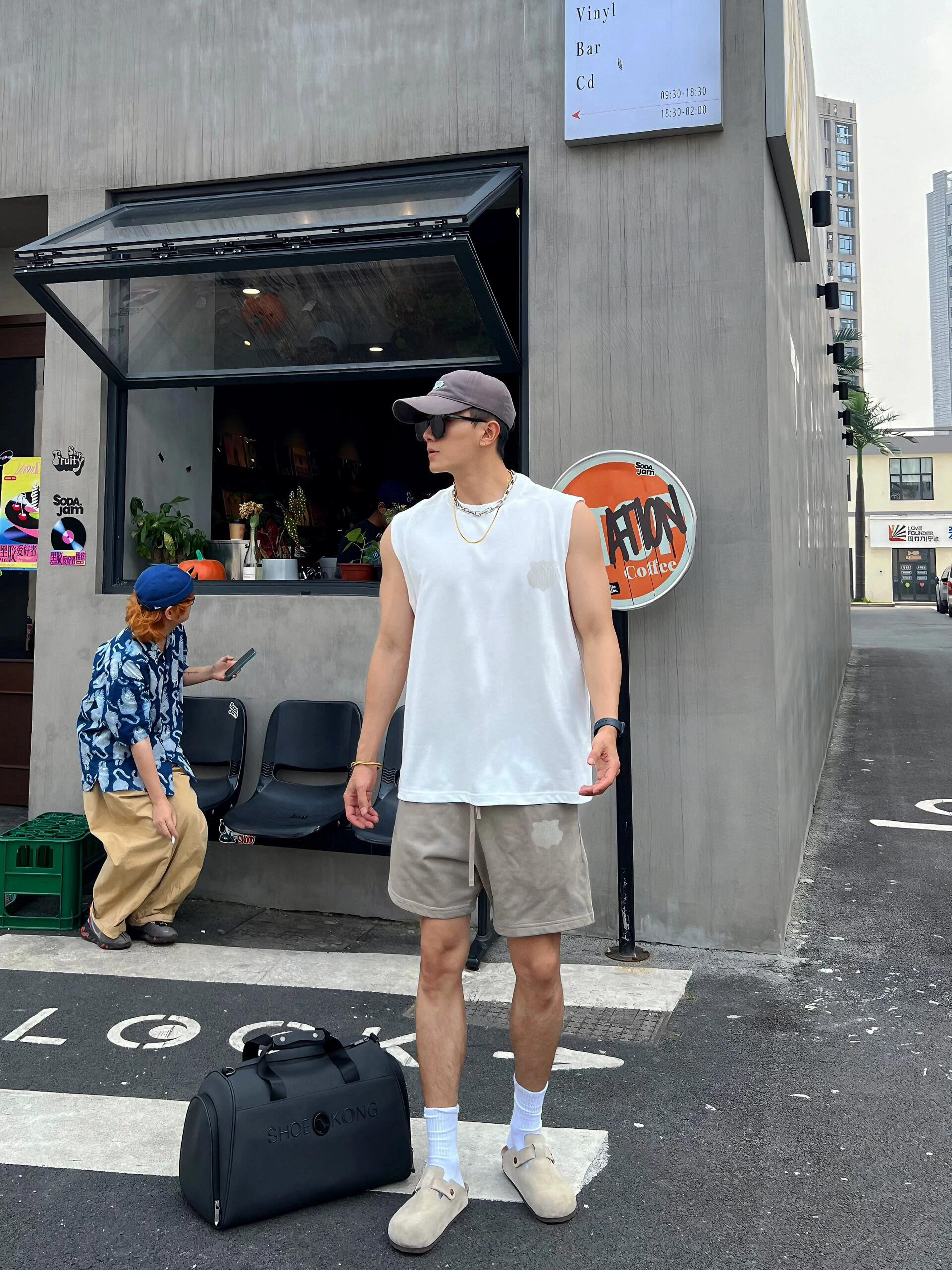 单件【虎头刺绣男士背心/美式五分裤】夏日清爽穿搭,背心+卫裤一身成套搭配超帅气!