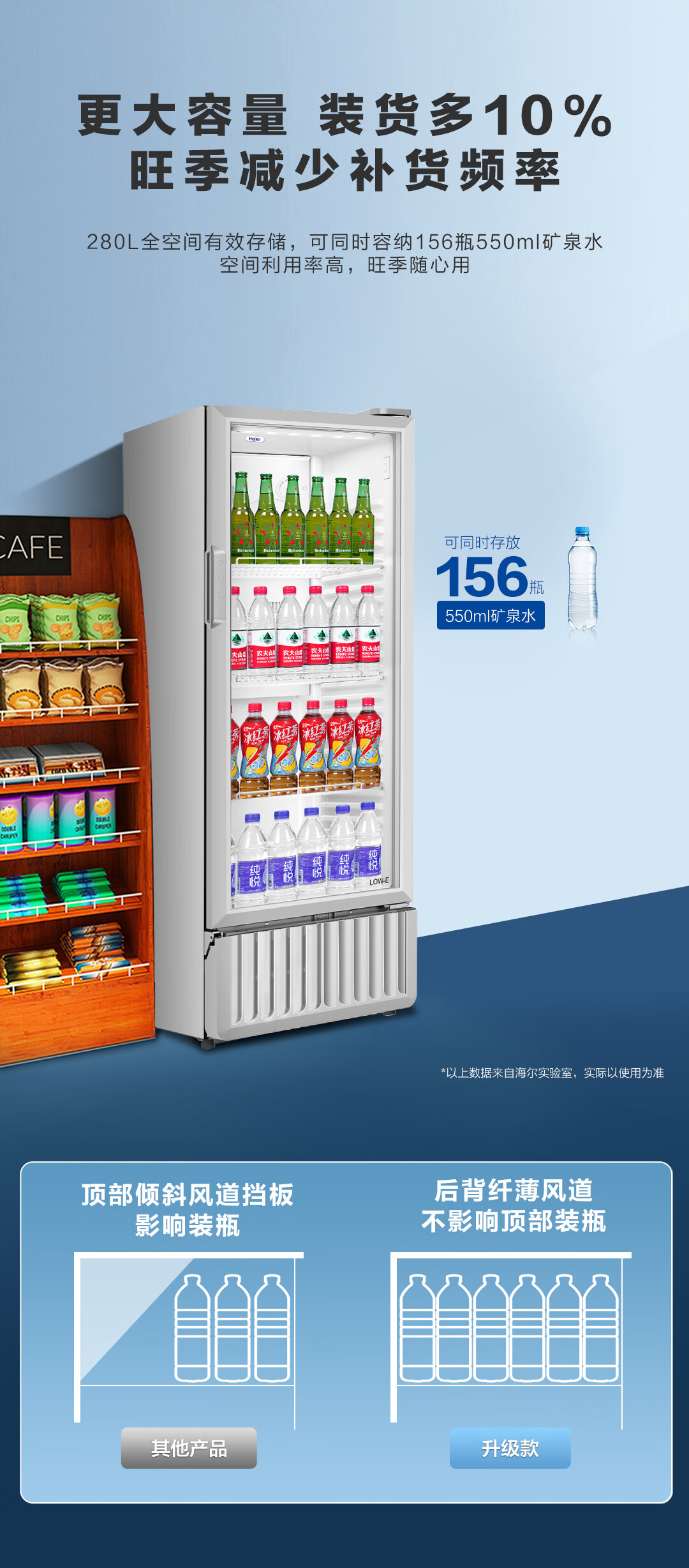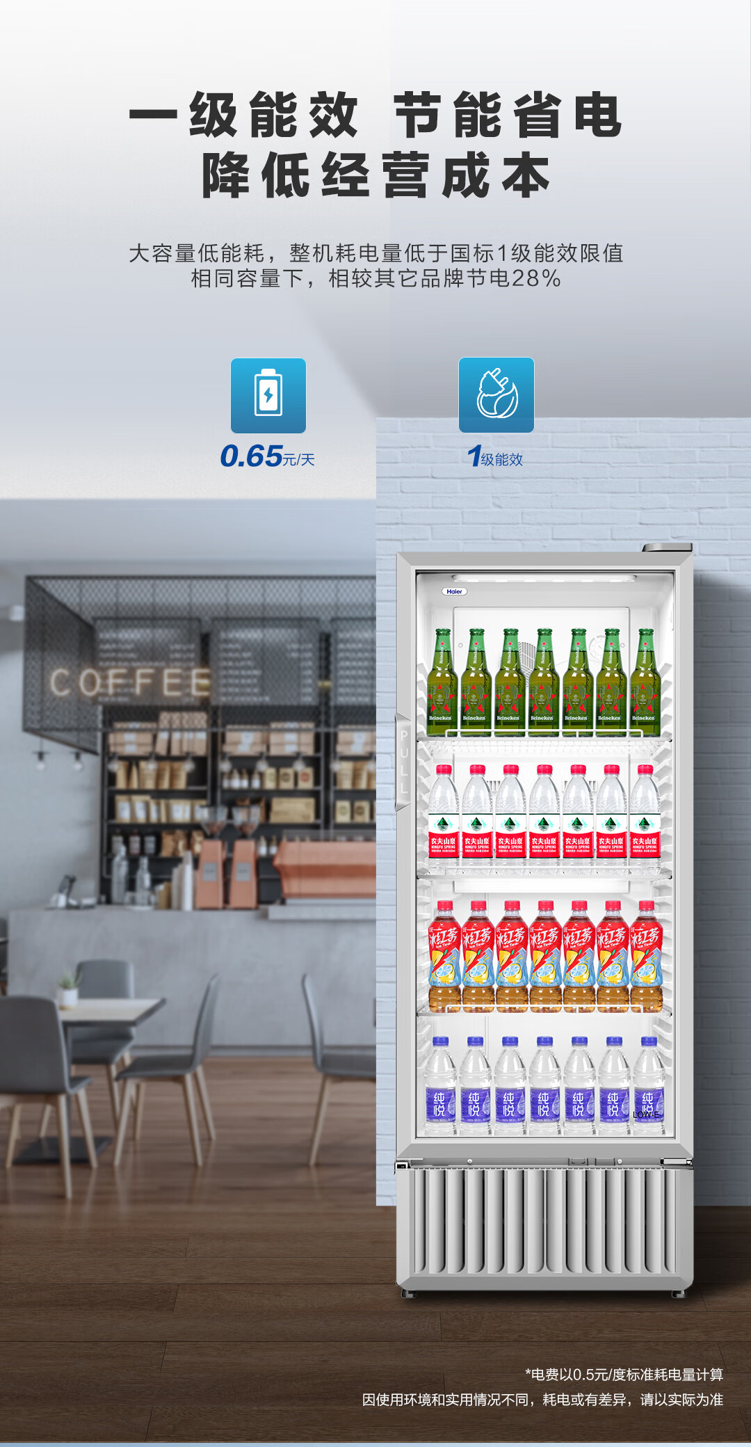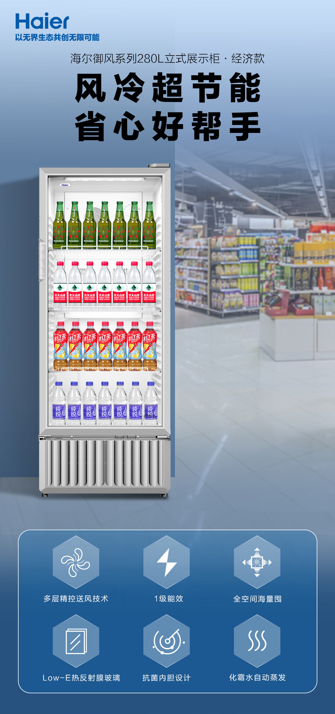 海尔(Haier)280升 新形象 多层风冷 全空间不倒水 风冷无霜 立式展示柜冰柜 饮料冷藏柜商用保鲜柜冷柜SC-302