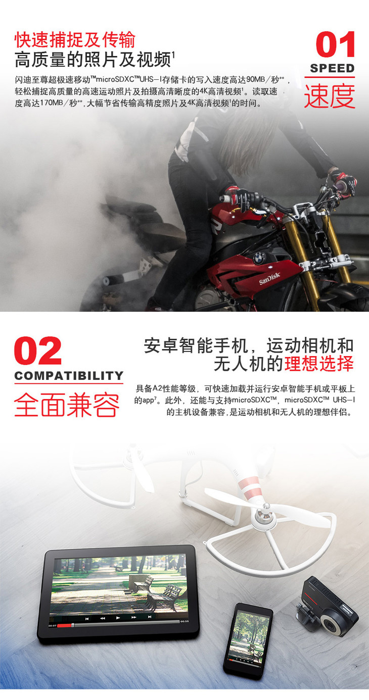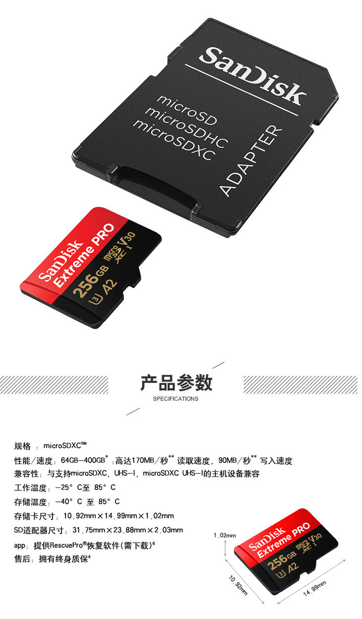 SanDisk闪迪 256g 无人机TF卡手机内存卡microsd卡A2相机卡存储卡