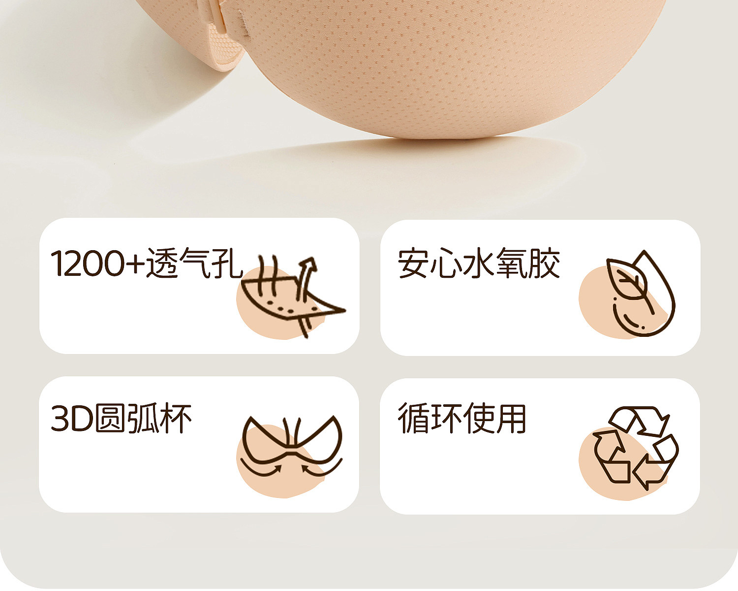 好奇蜜斯女士防走光防凸点3D立体大芒果杯深V聚拢轻薄透气乳贴-轻肤氧气乳贴
