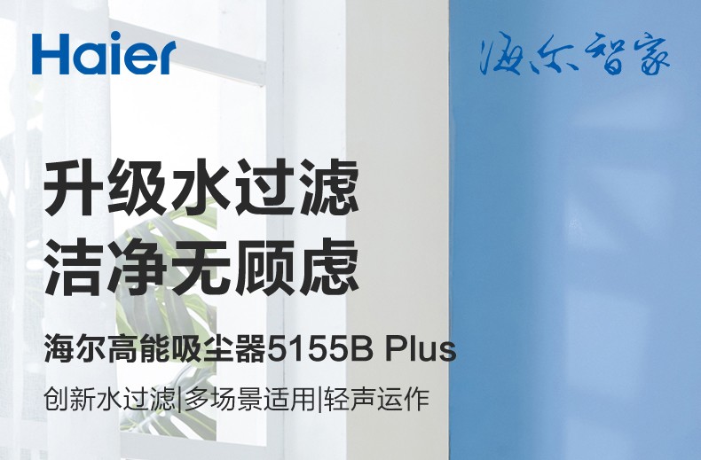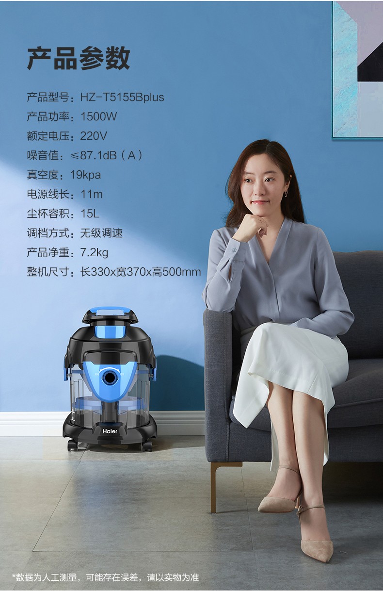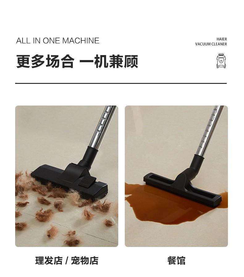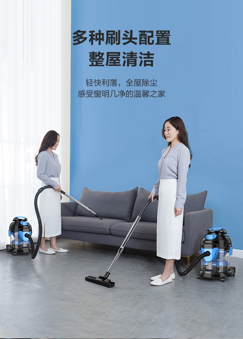 海尔水过滤吸尘器家用桶式强力大功率干湿两用地毯宾馆大吸力浅蓝色