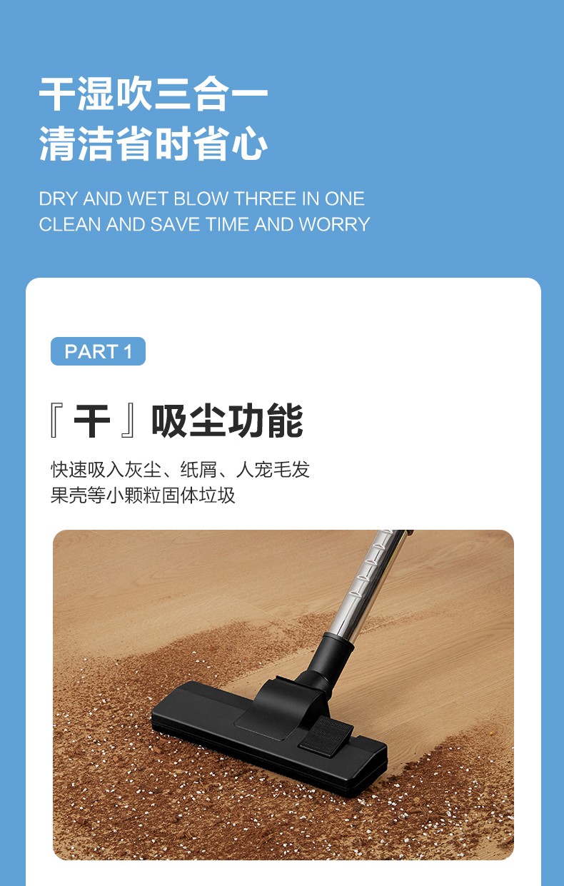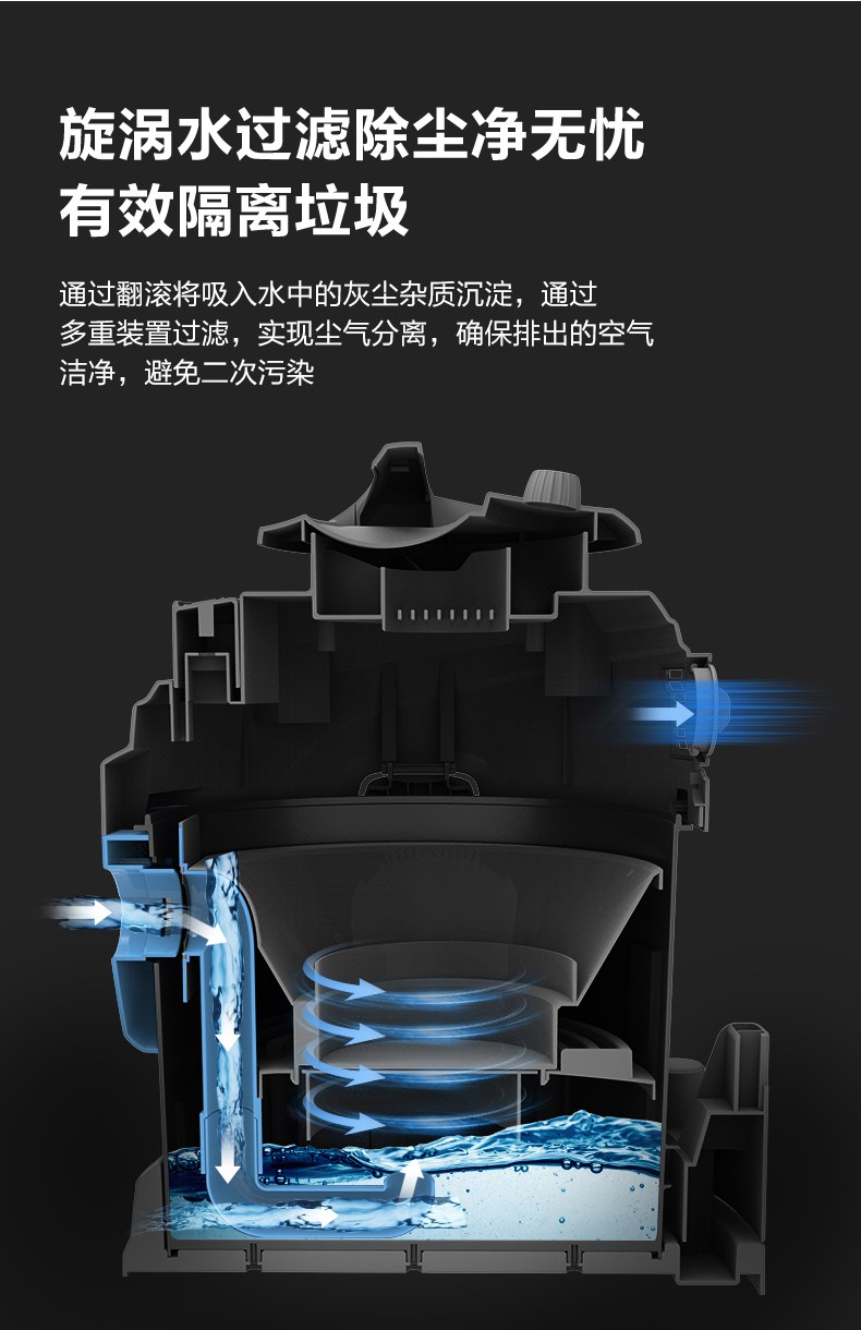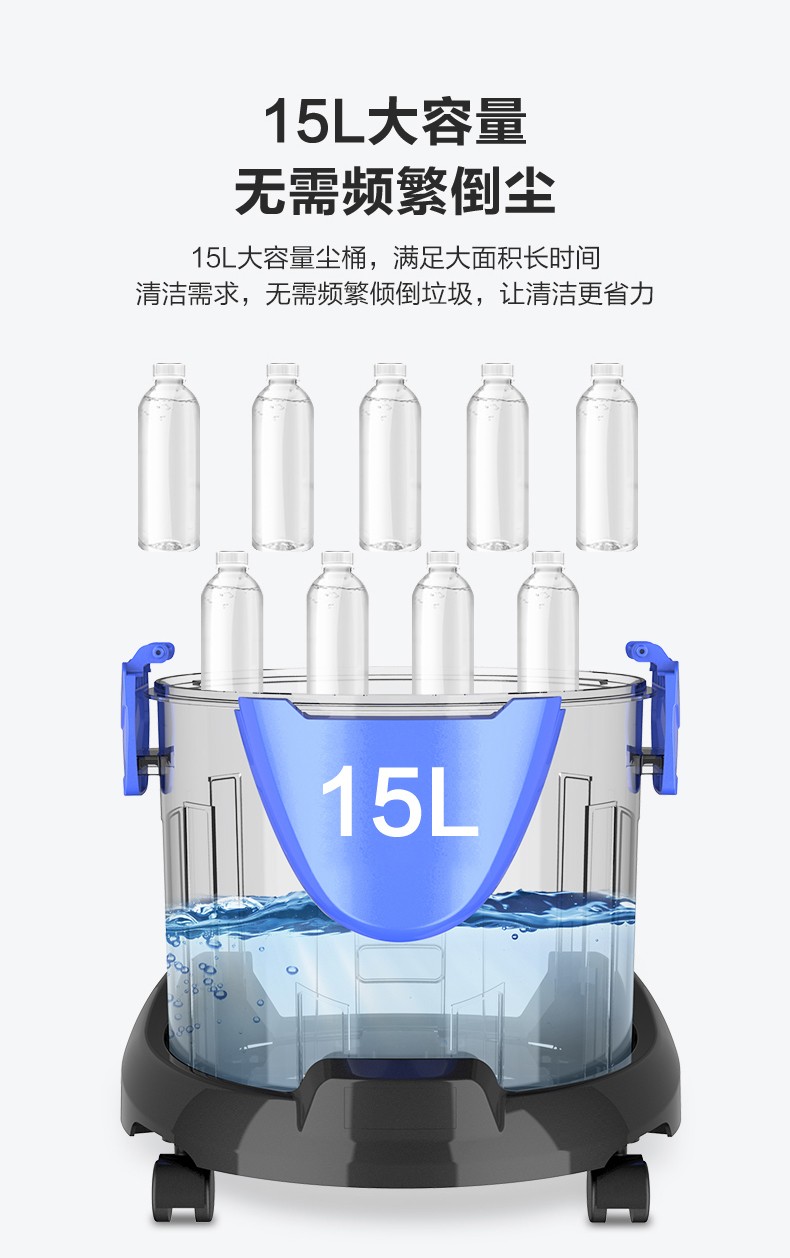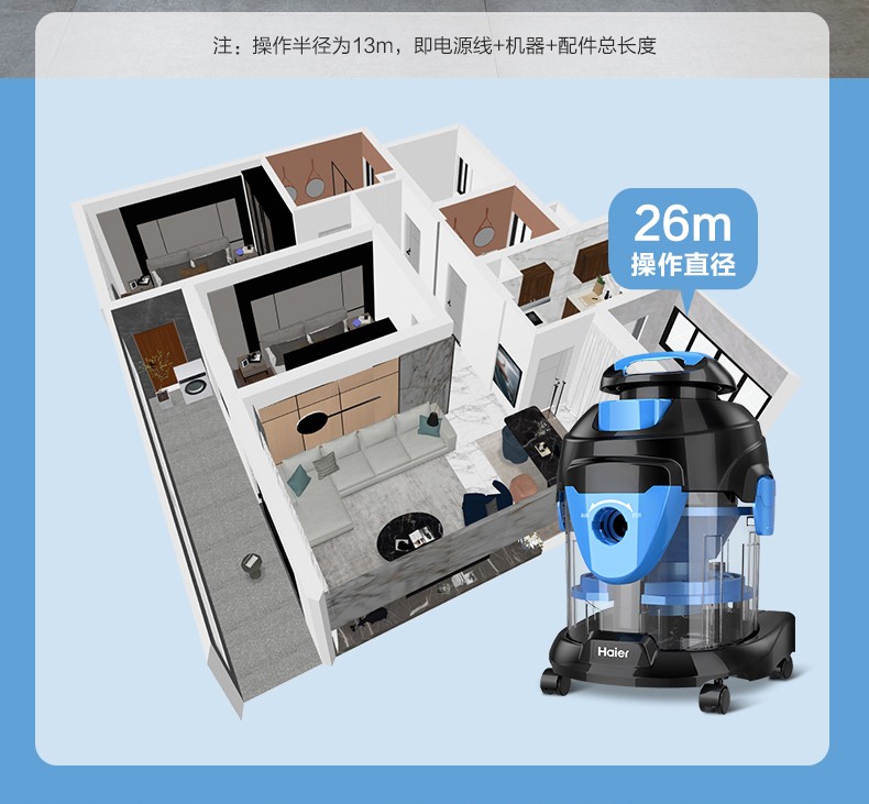 海尔水过滤吸尘器家用桶式强力大功率干湿两用地毯宾馆大吸力浅蓝色