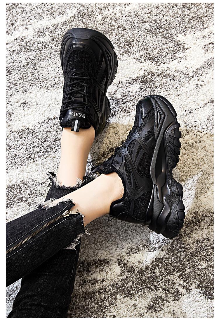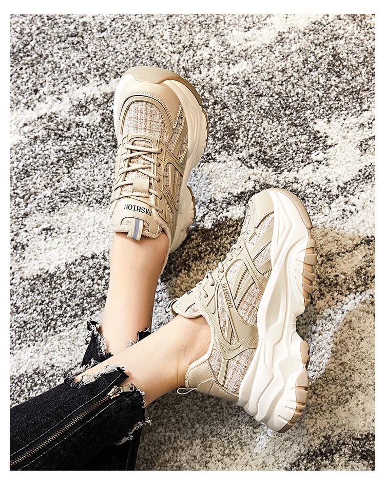 吸膜底老爹鞋春夏2024女士新款厚底真皮休闲女鞋百搭跑步运动鞋女